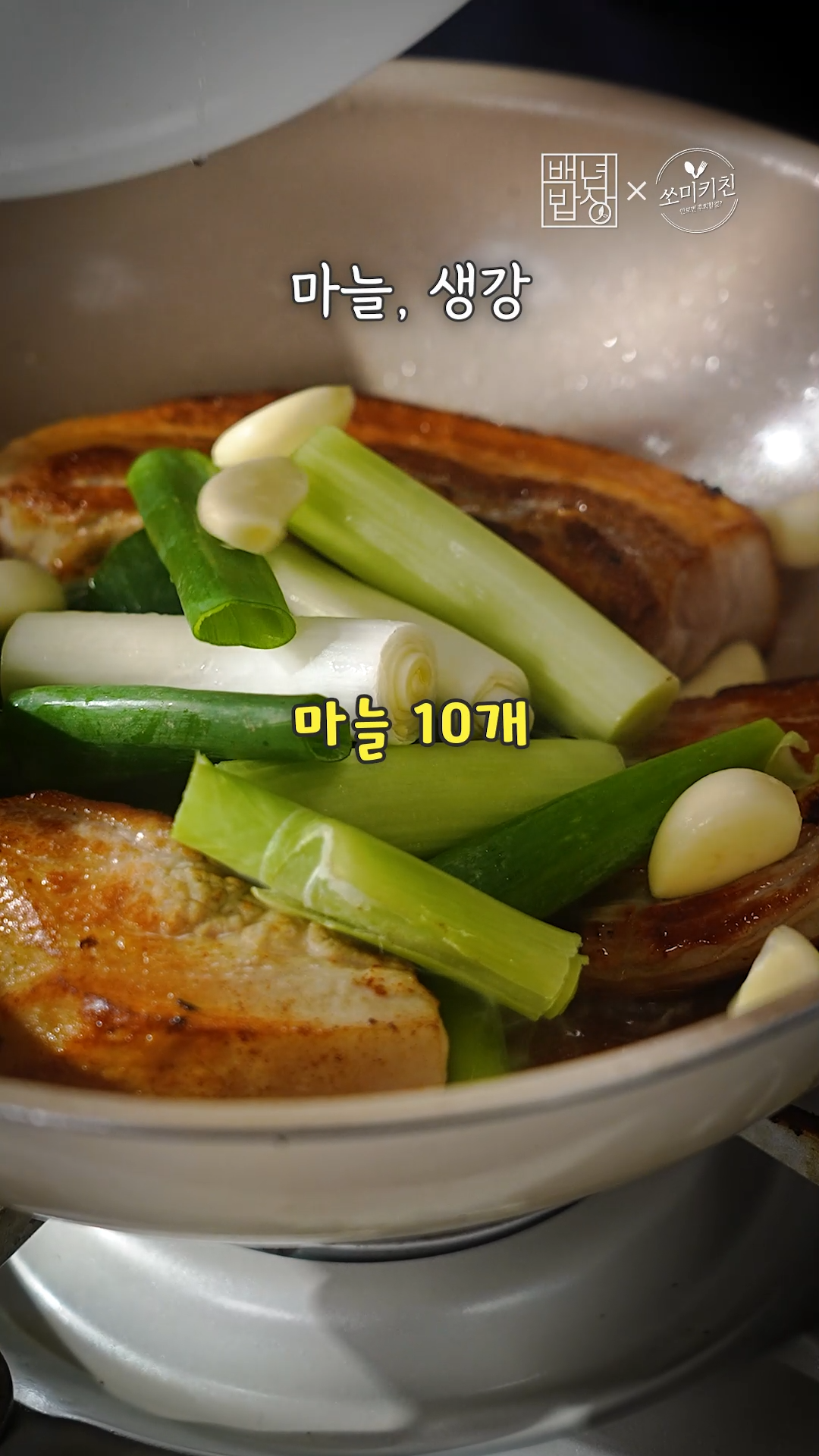 2. 비계 부분이 아래로 가도록 후라이팬에 노릇하게 구워주세요.