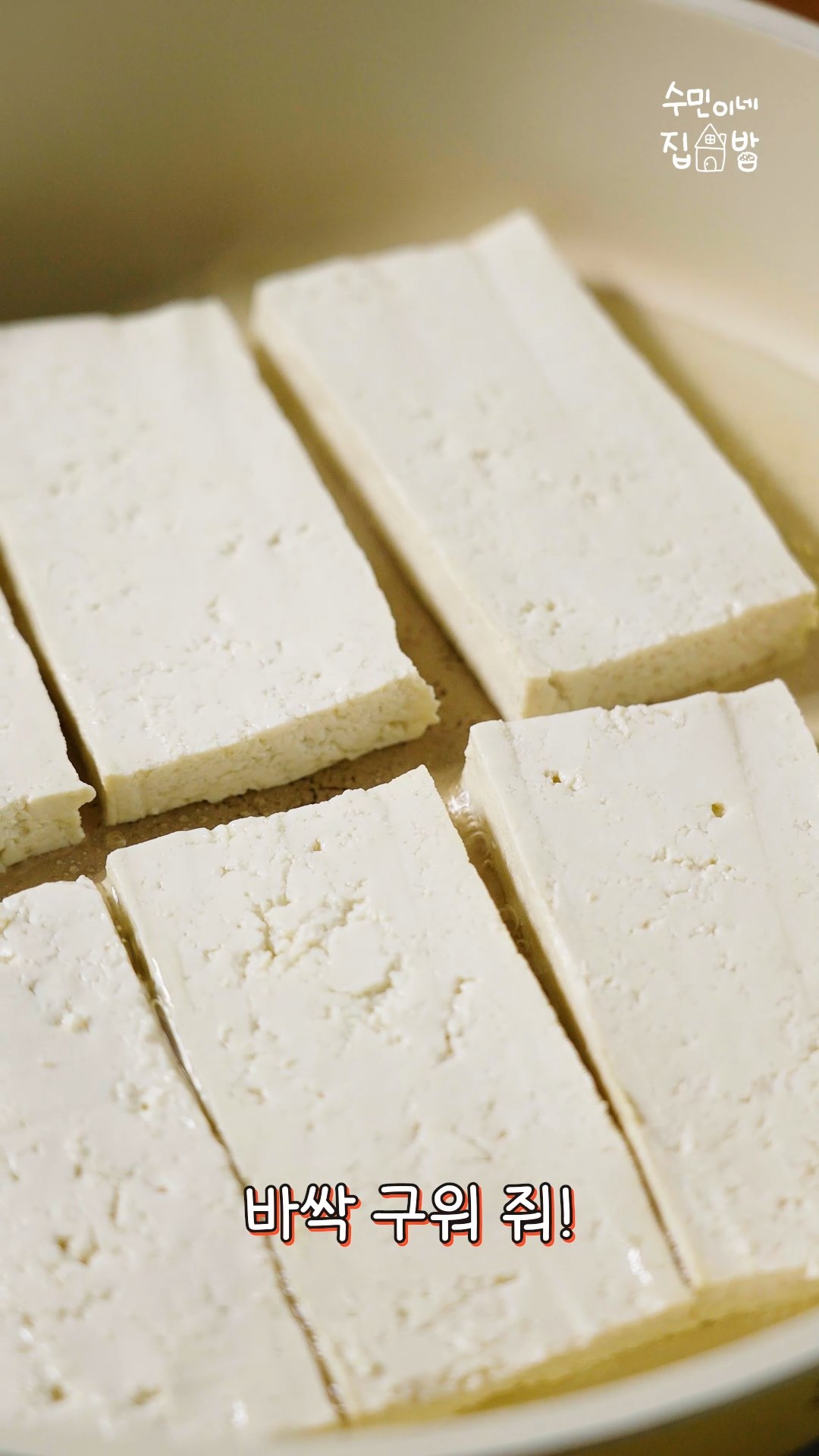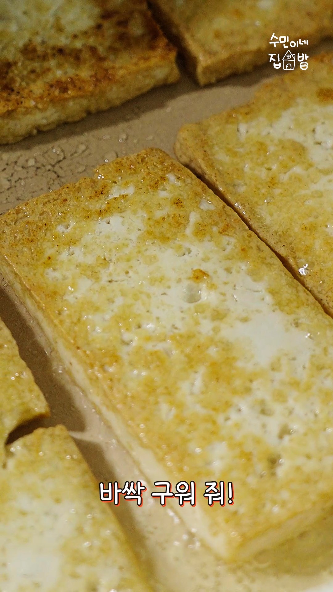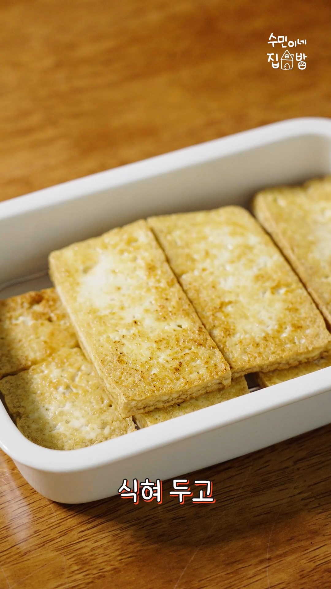 1. 두부는 얇게 저며 기름에 바싹 구워주세요.