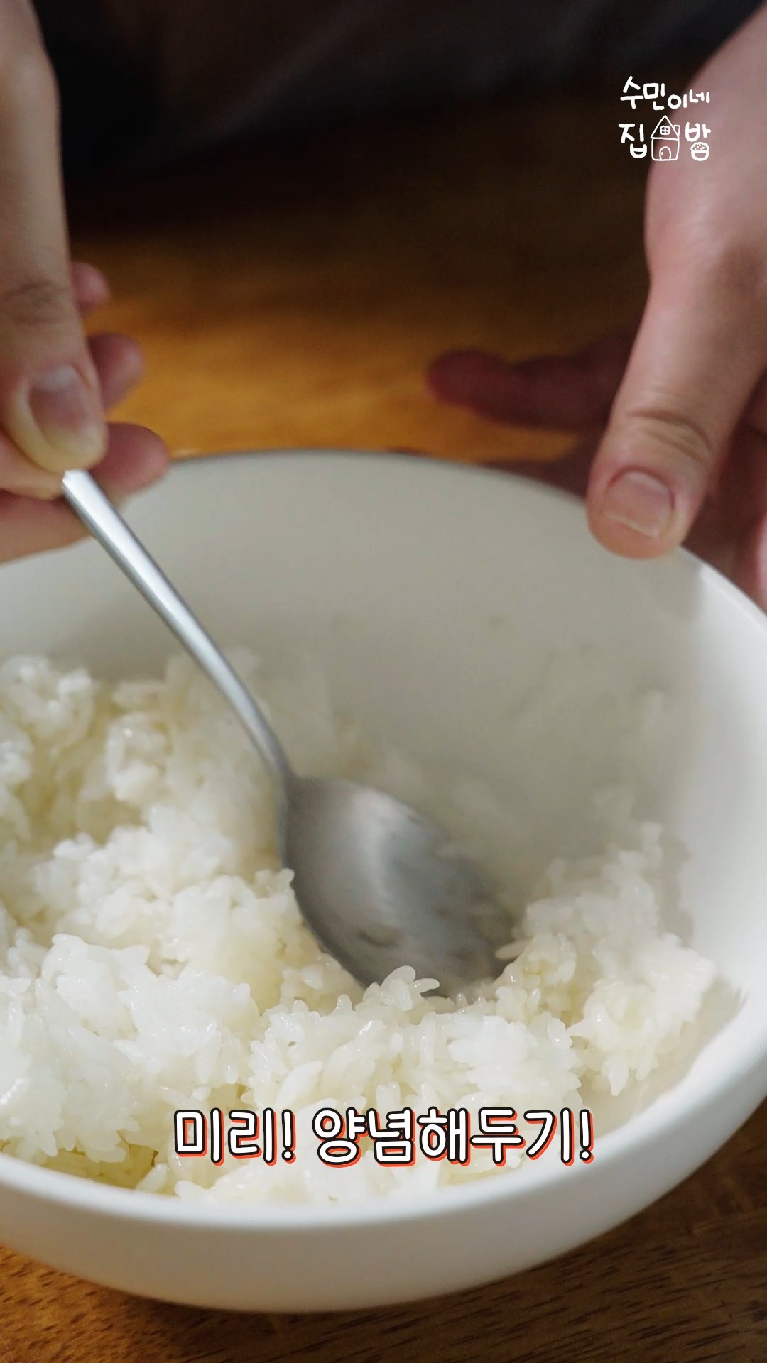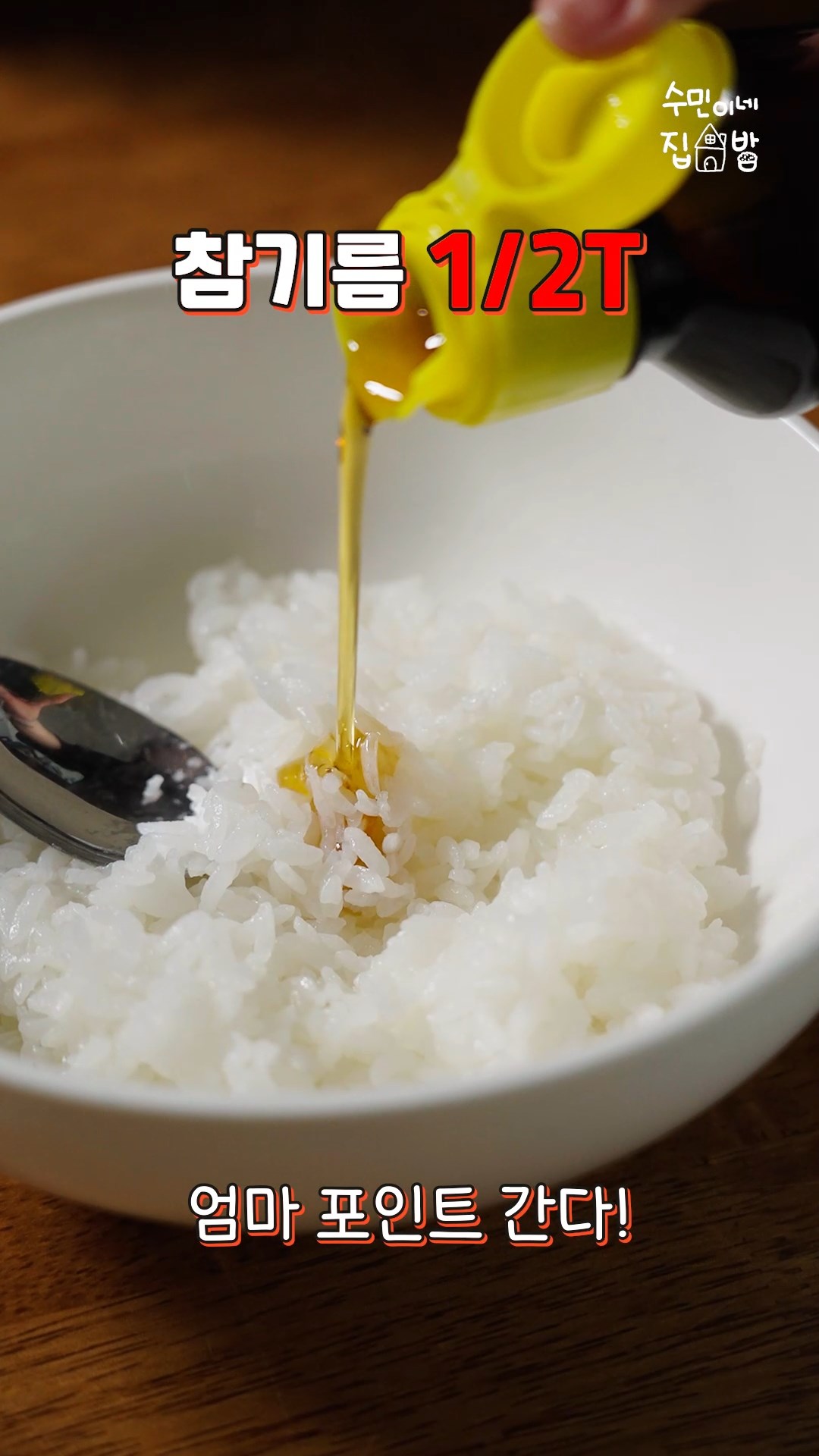 3. 따뜻한 밥에 참기름, 소금으로 밑간을 해주세요.
