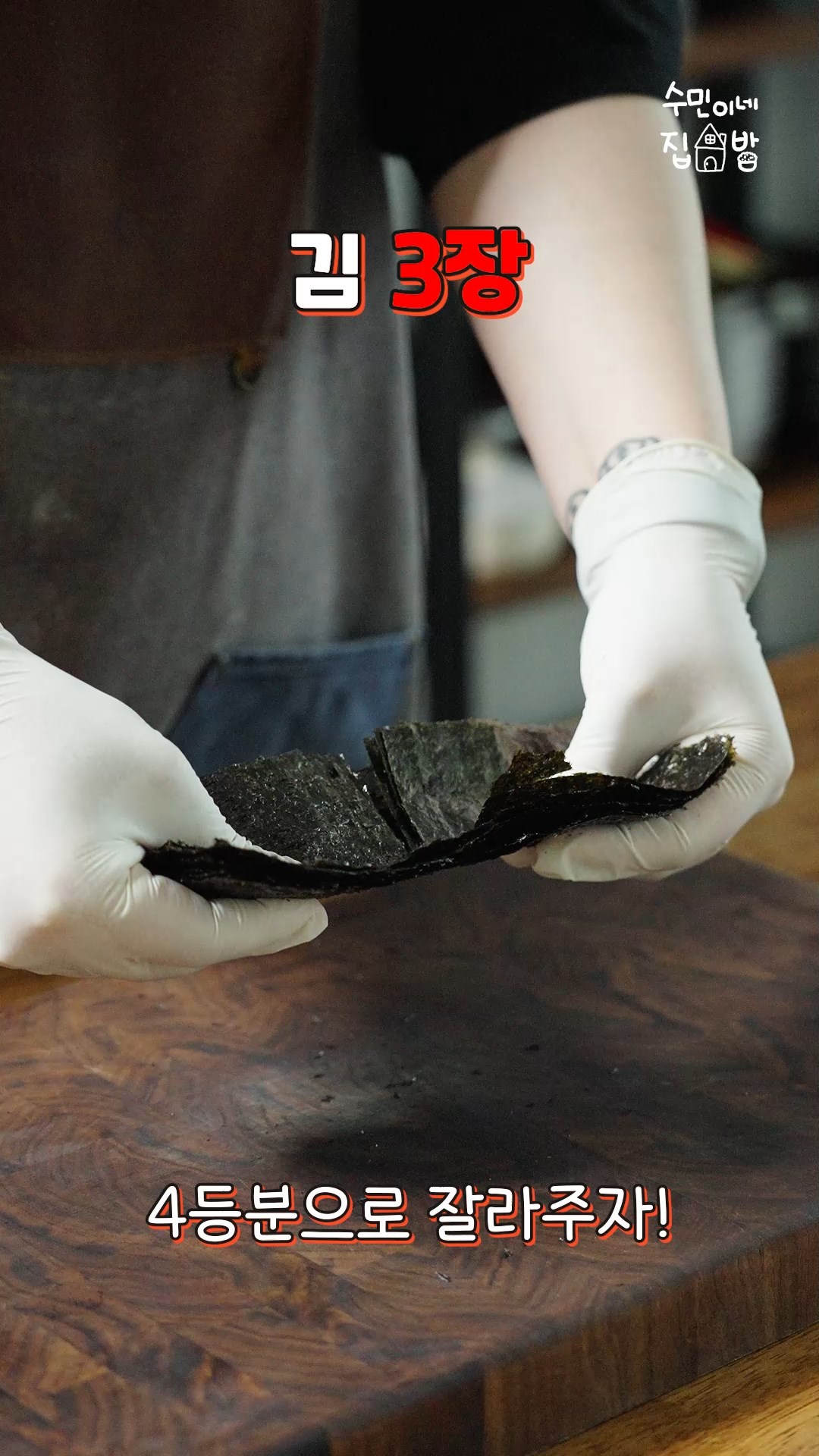 2. 구운 두부는 식혀두고 김,단무지를 4등분 내주세요.