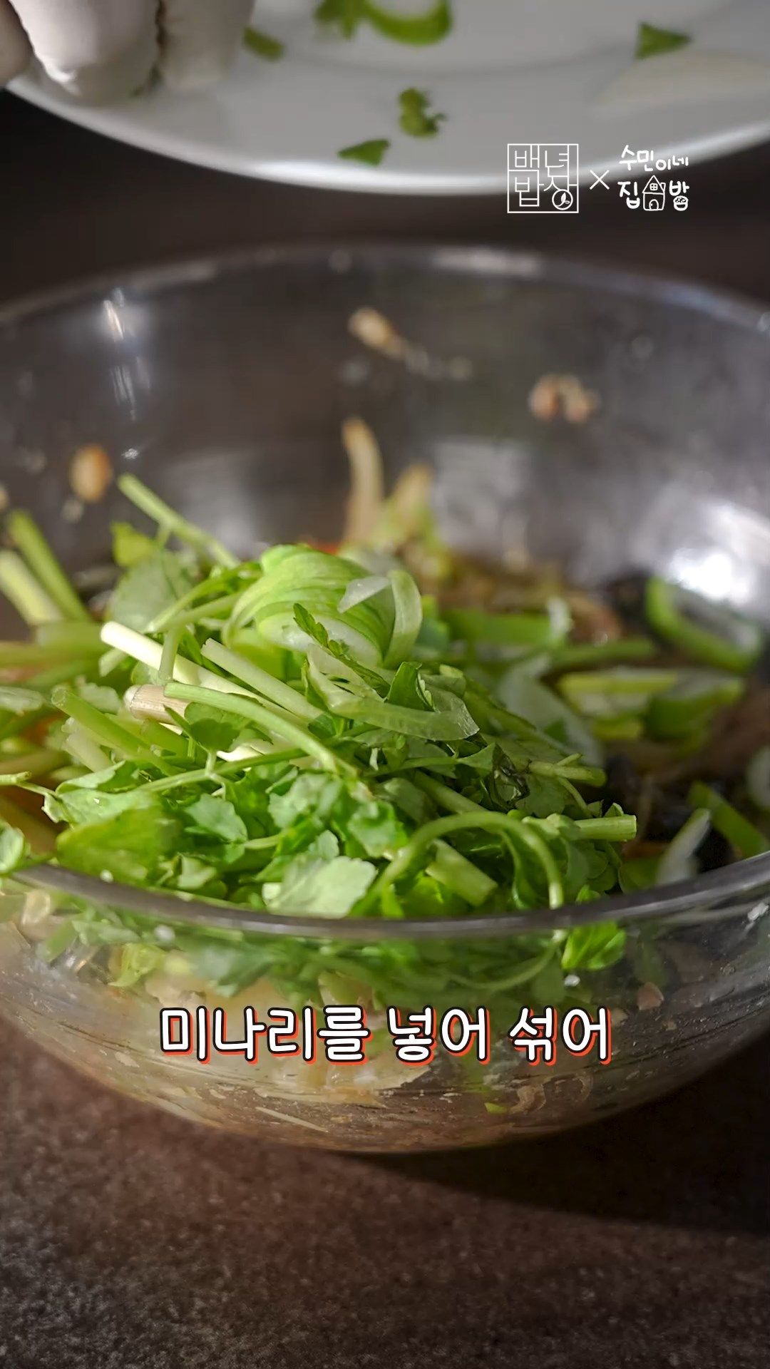 4. 익혀낸 잡채는 꺼내 섞어준 뒤 미나리,대파를 넣어 3분 더 돌려주세요.