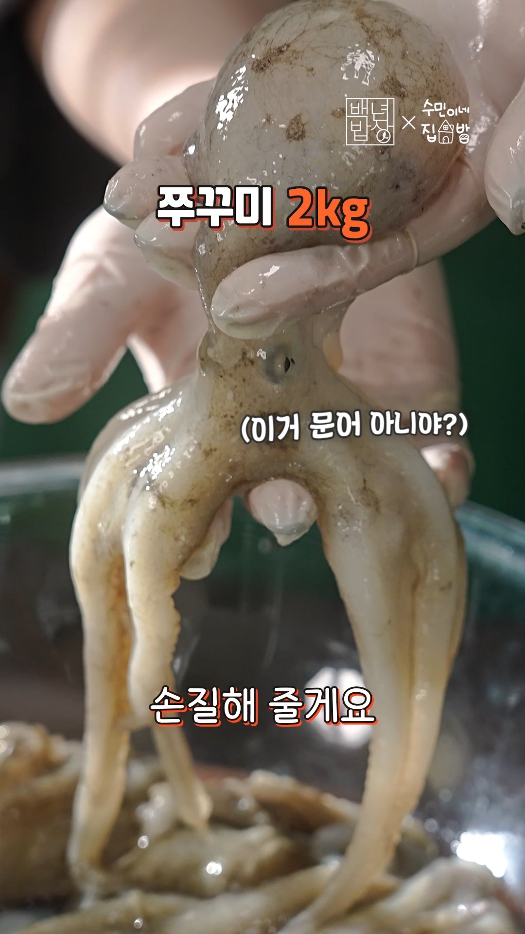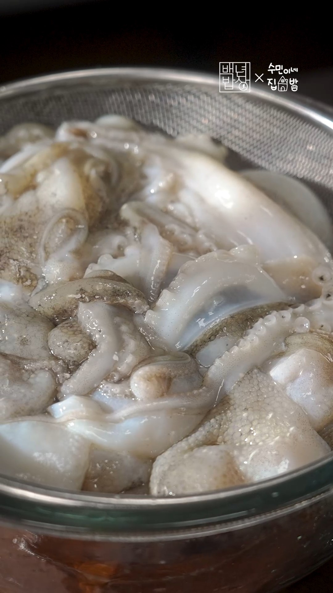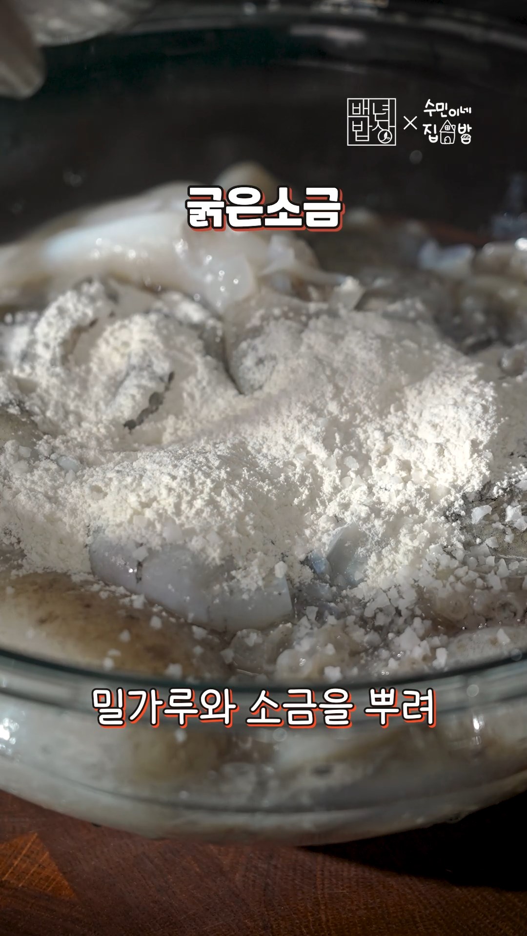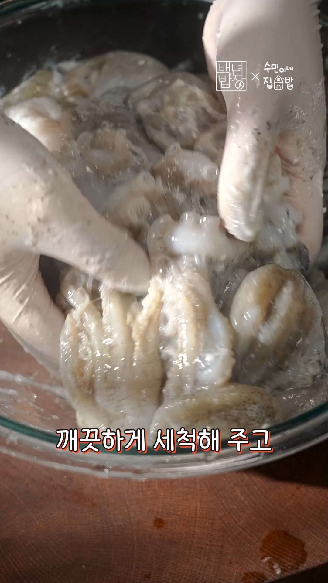 2. 쭈꾸미는 손질 후 밀가루, 굵은소금을 사용해 세척 해주세요.