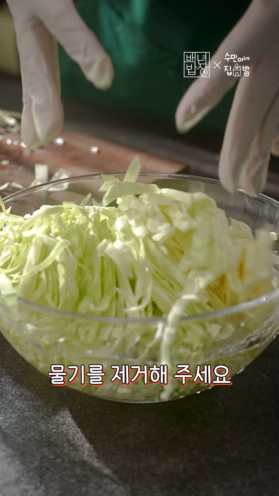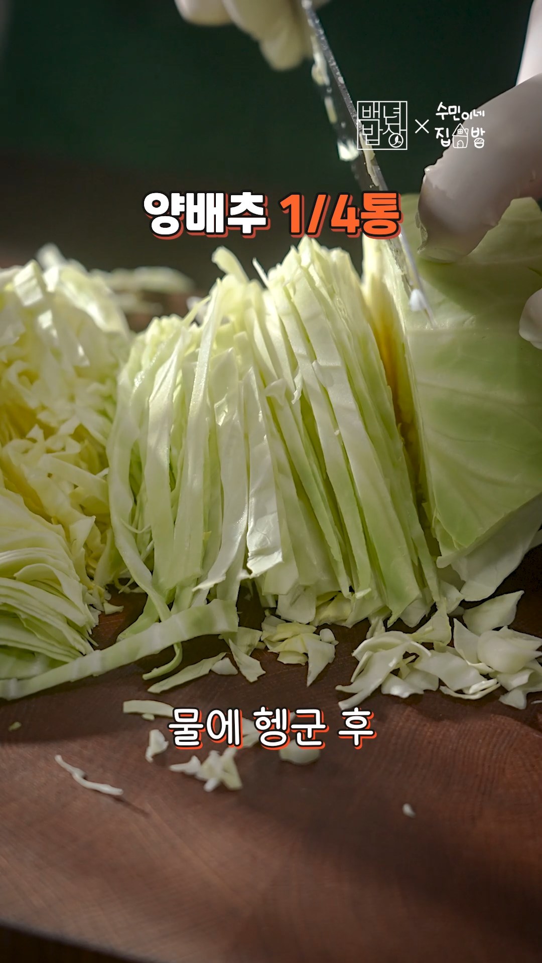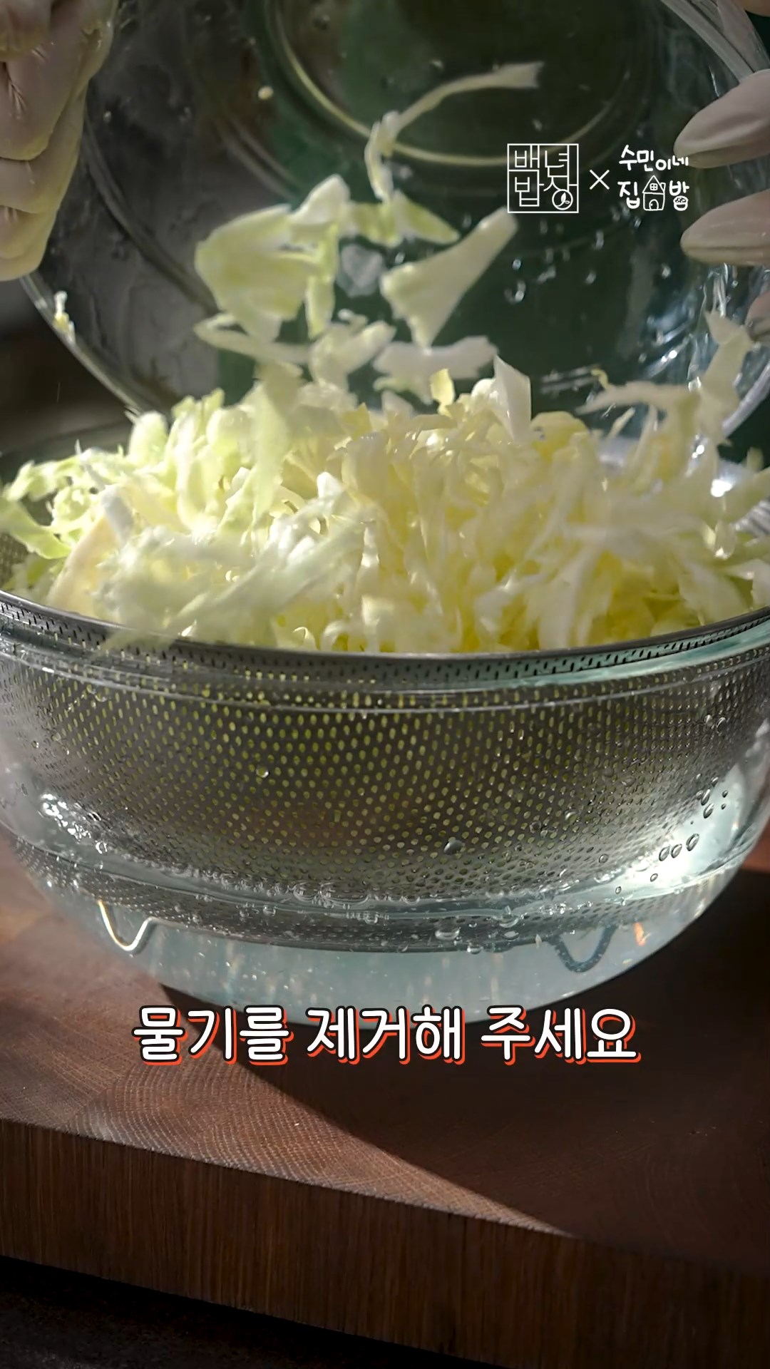 1. 양배추는 채 쳐서 물에 헹궈 물기를 제거해주세요.