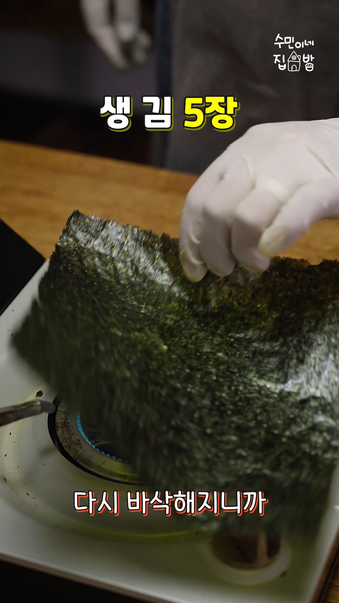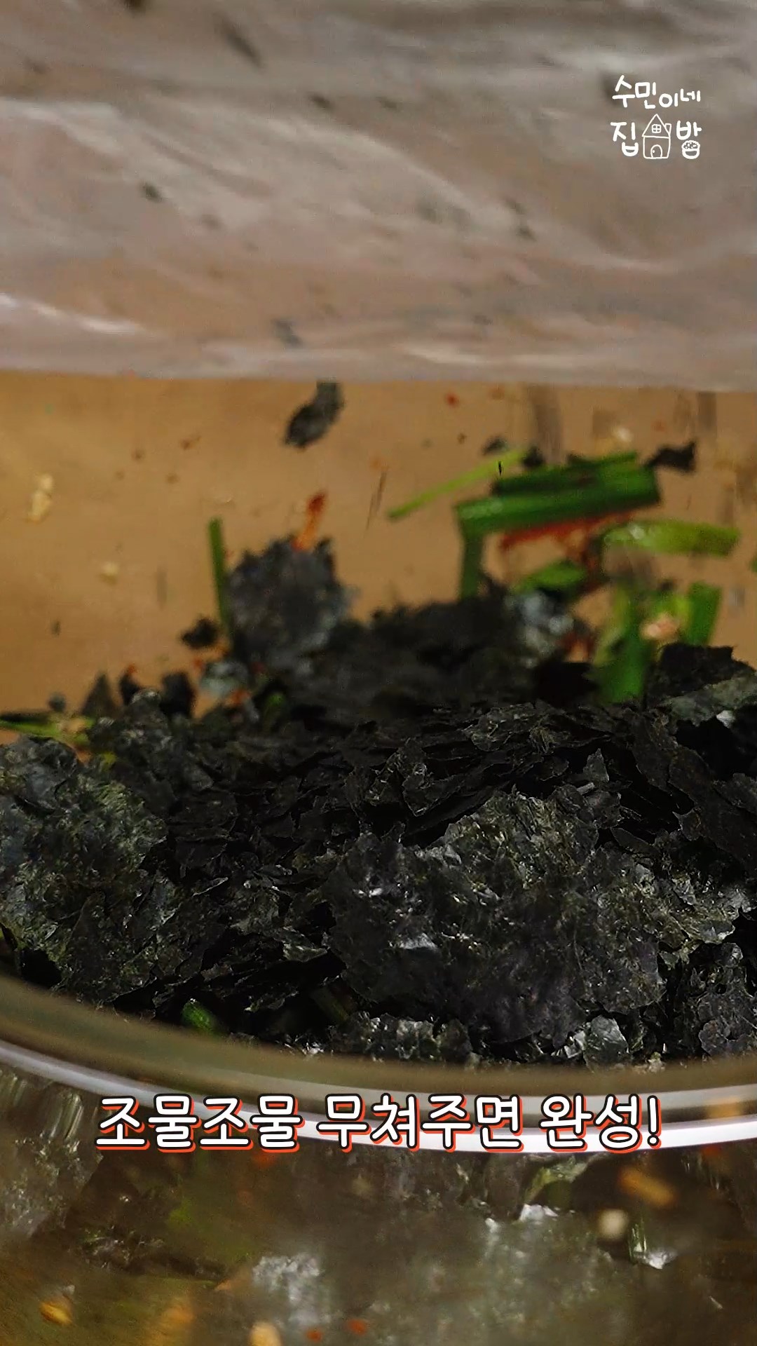 4. 봉지에 김을 넣고 부셔주세요.