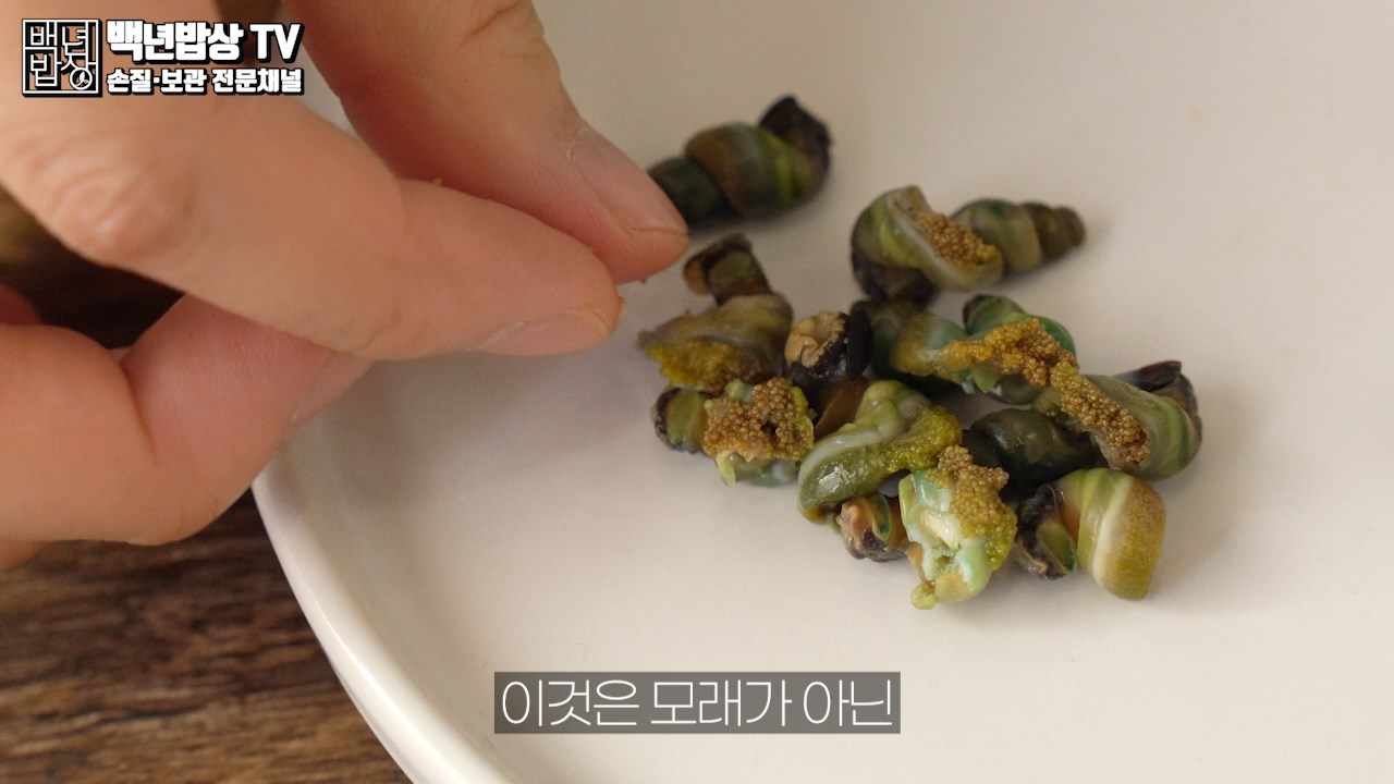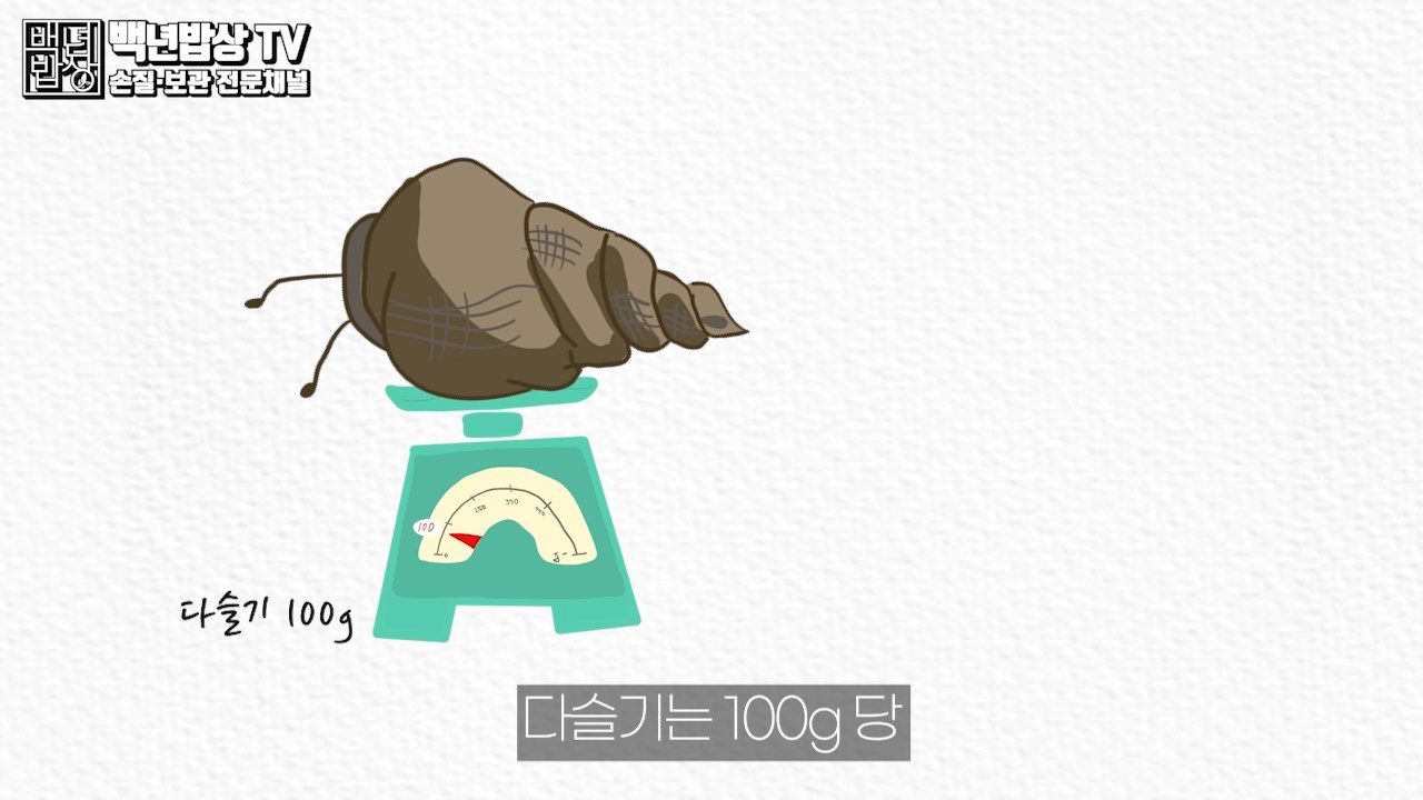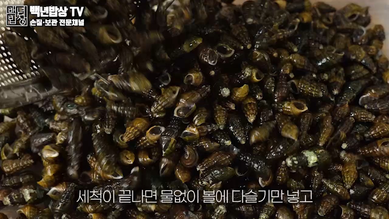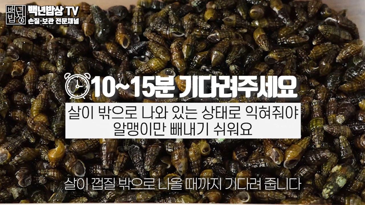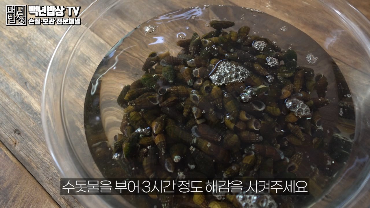 다슬기 껍데기에는 키토산이 포함되어 있어 유익하므로 요리를 할 때는 껍질과 함께 조리하세요. (다슬기 물은 고혈압 개선 효능이 있습니다.)