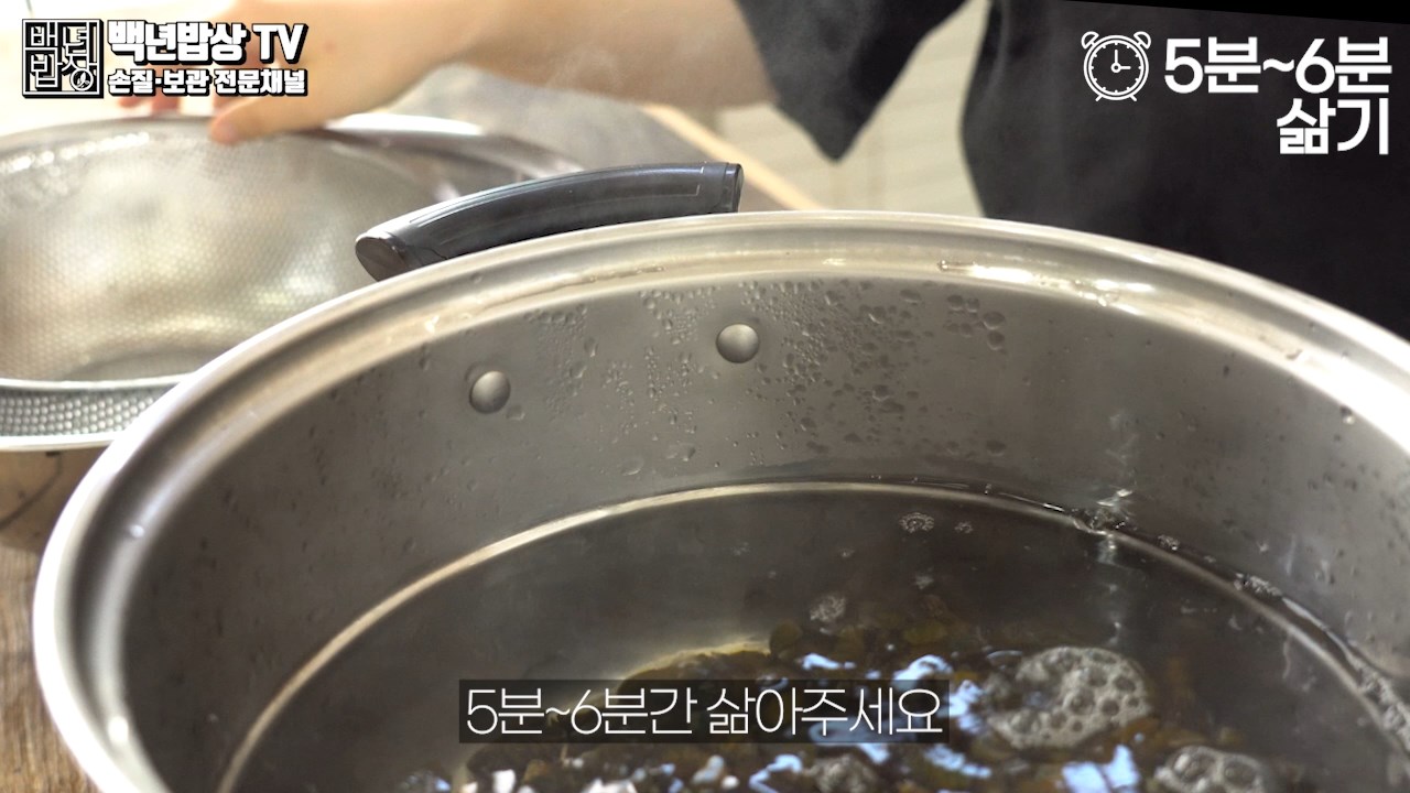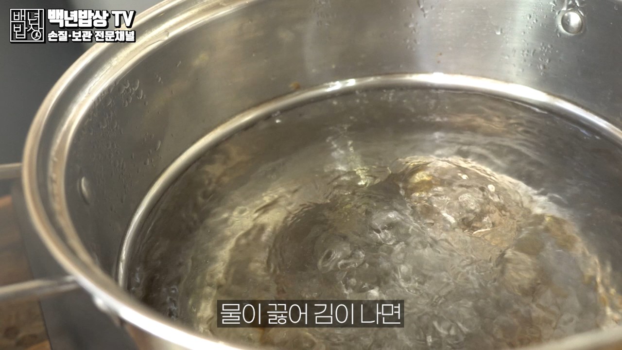 물이 끓어 김이 나면 손질한 다슬기를 넣고 5~6분간 삶아주세요. (끓이는 동안 거품이 올라오면 걷어내어 주세요.)