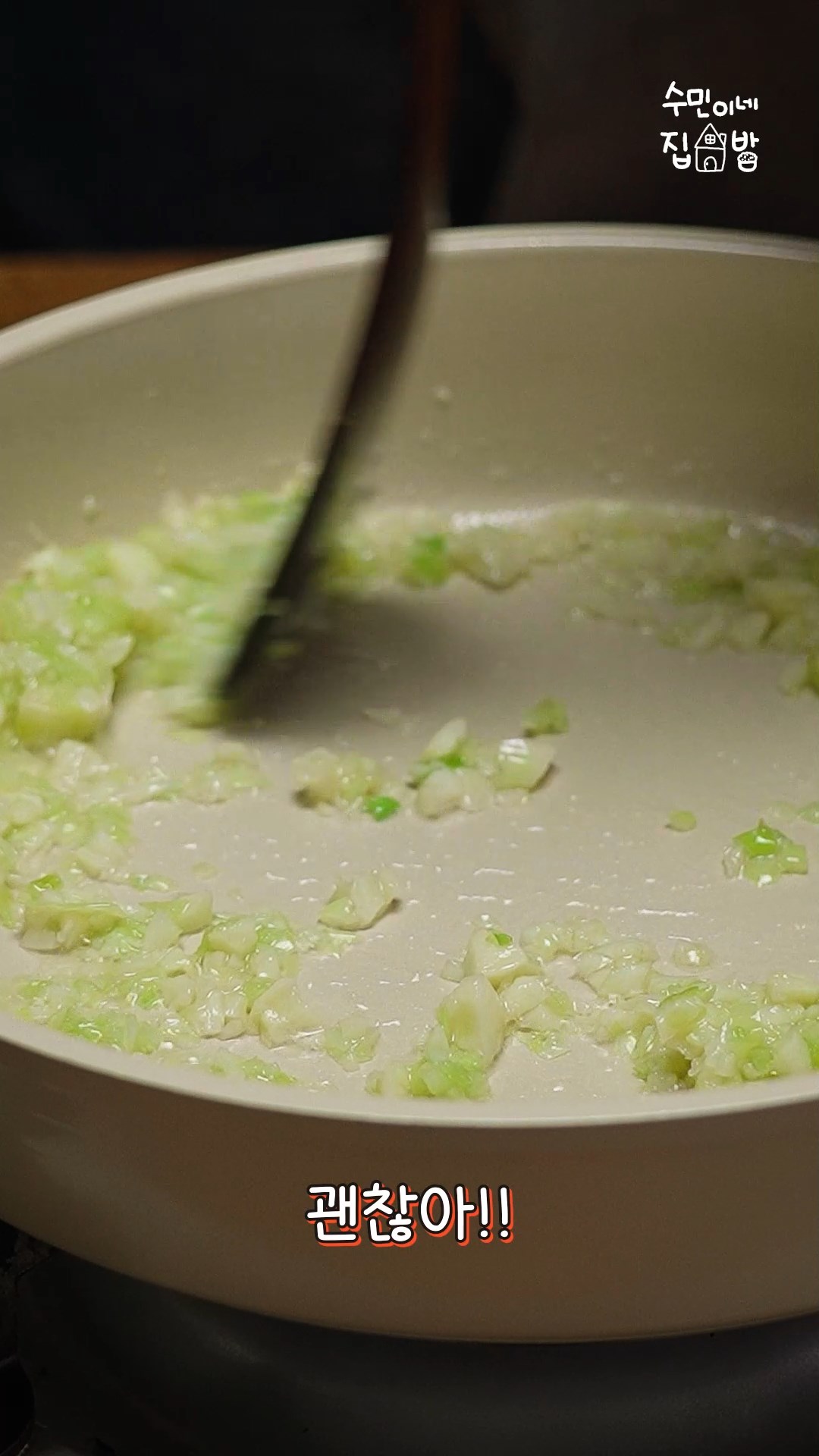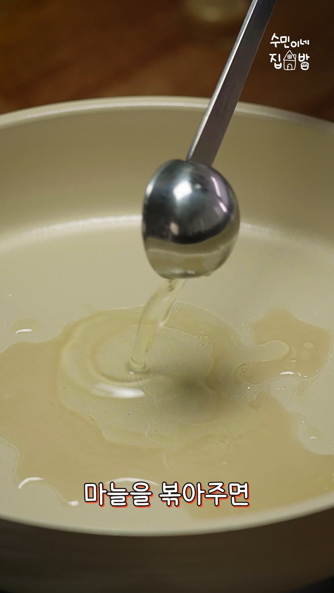 3. 팬에 참치기름2T와 식용유1T를 넣고 대파와 마늘을 노릇하게 볶아주세요.