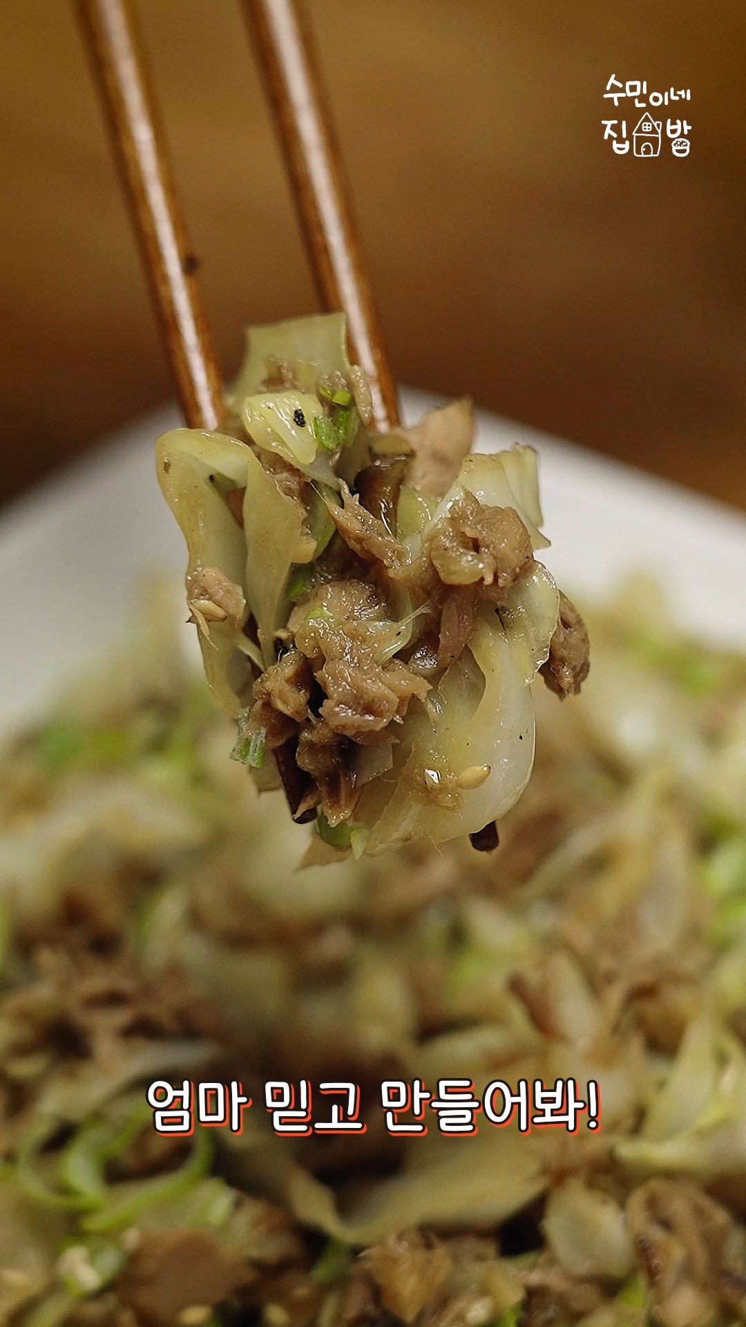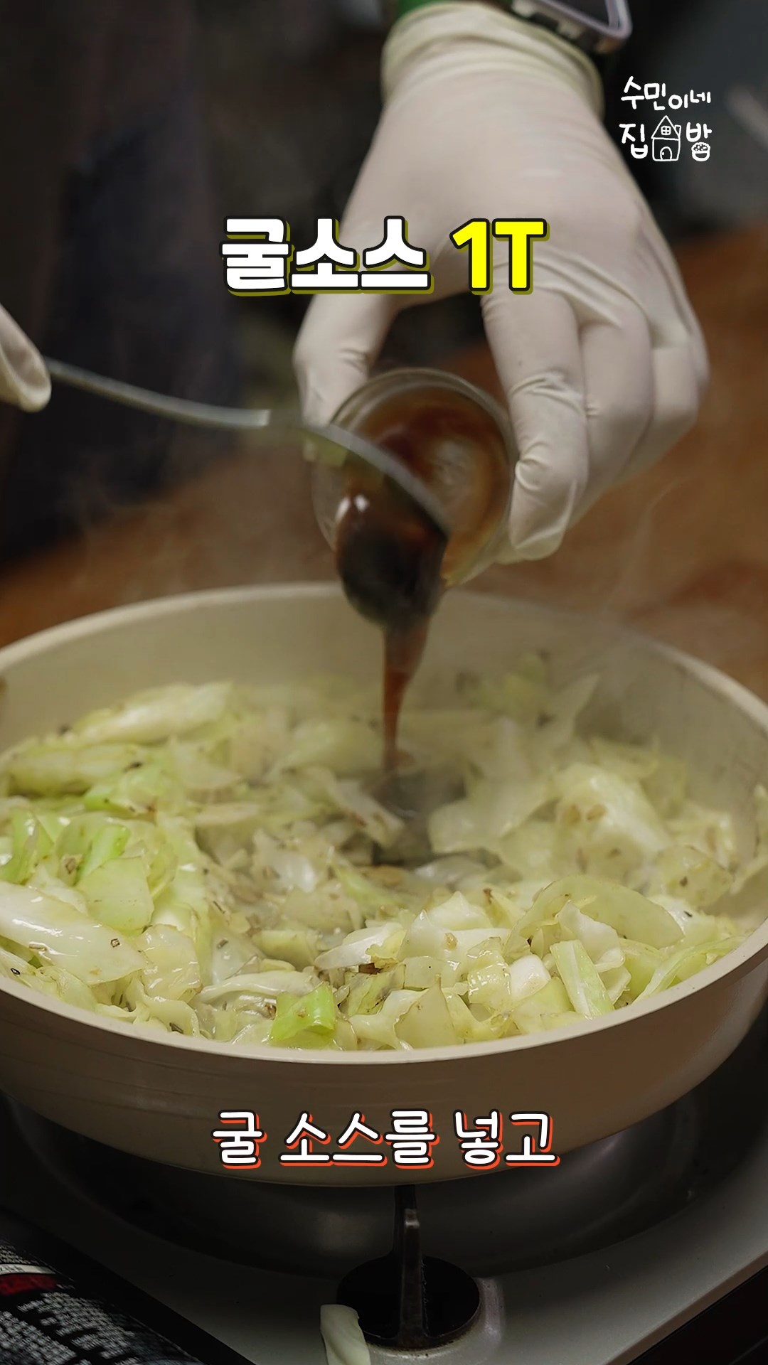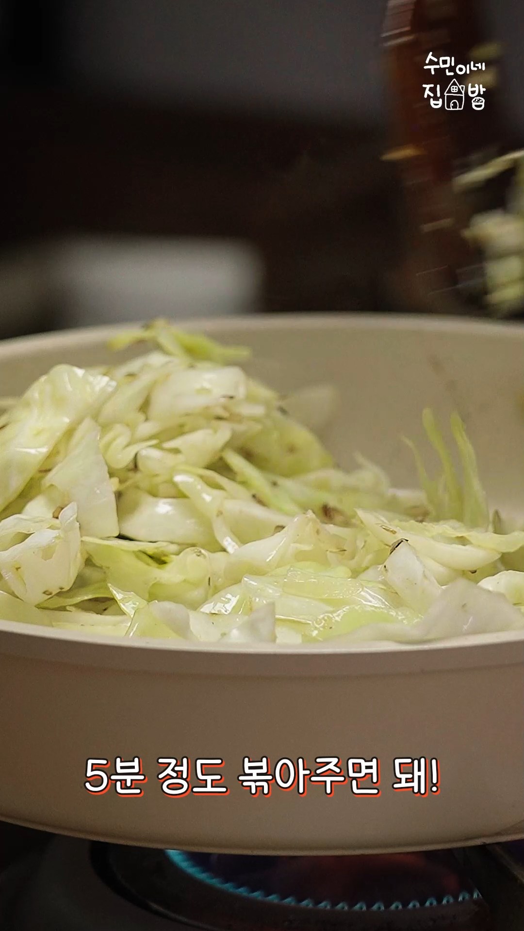 4. 양배추를 넣고 숨이 죽을 때 까지 볶아주세요.