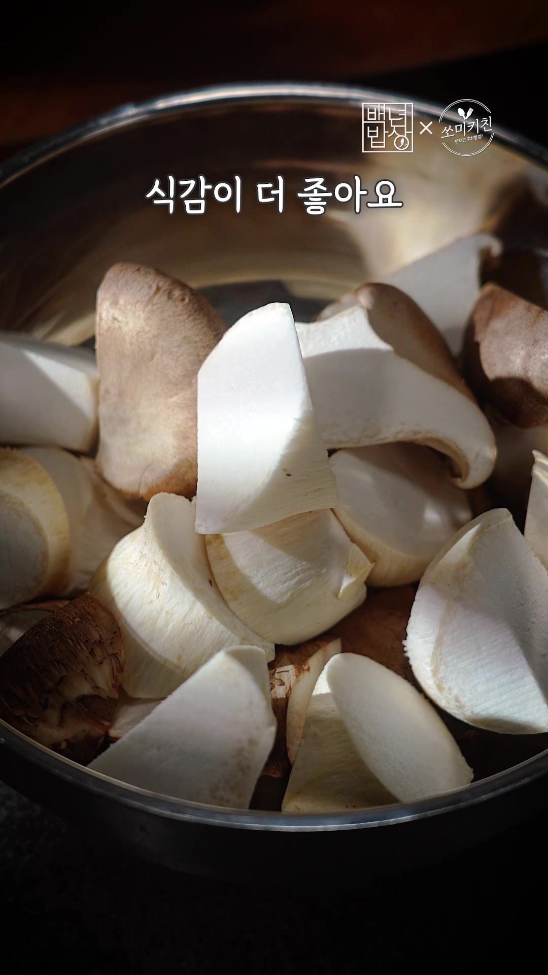 1. 세척한 표고버섯과 새송이버섯은 먹기 좋게 썰어주세요.