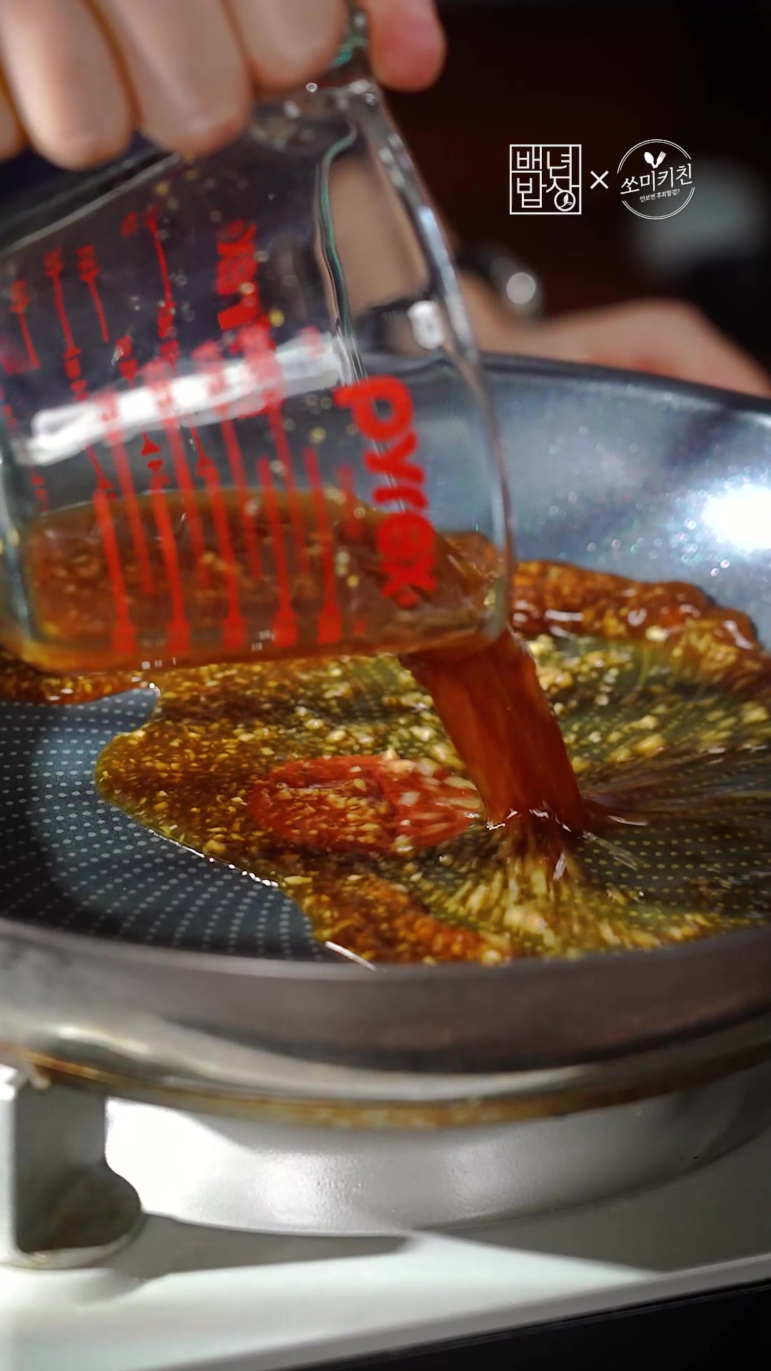 5. 물, 간장, 식초, 맛술, 꿀, 다진마늘 넣어 끓어오르면 버섯을 넣어 센불에서 빠르게 버무려주면 완성!