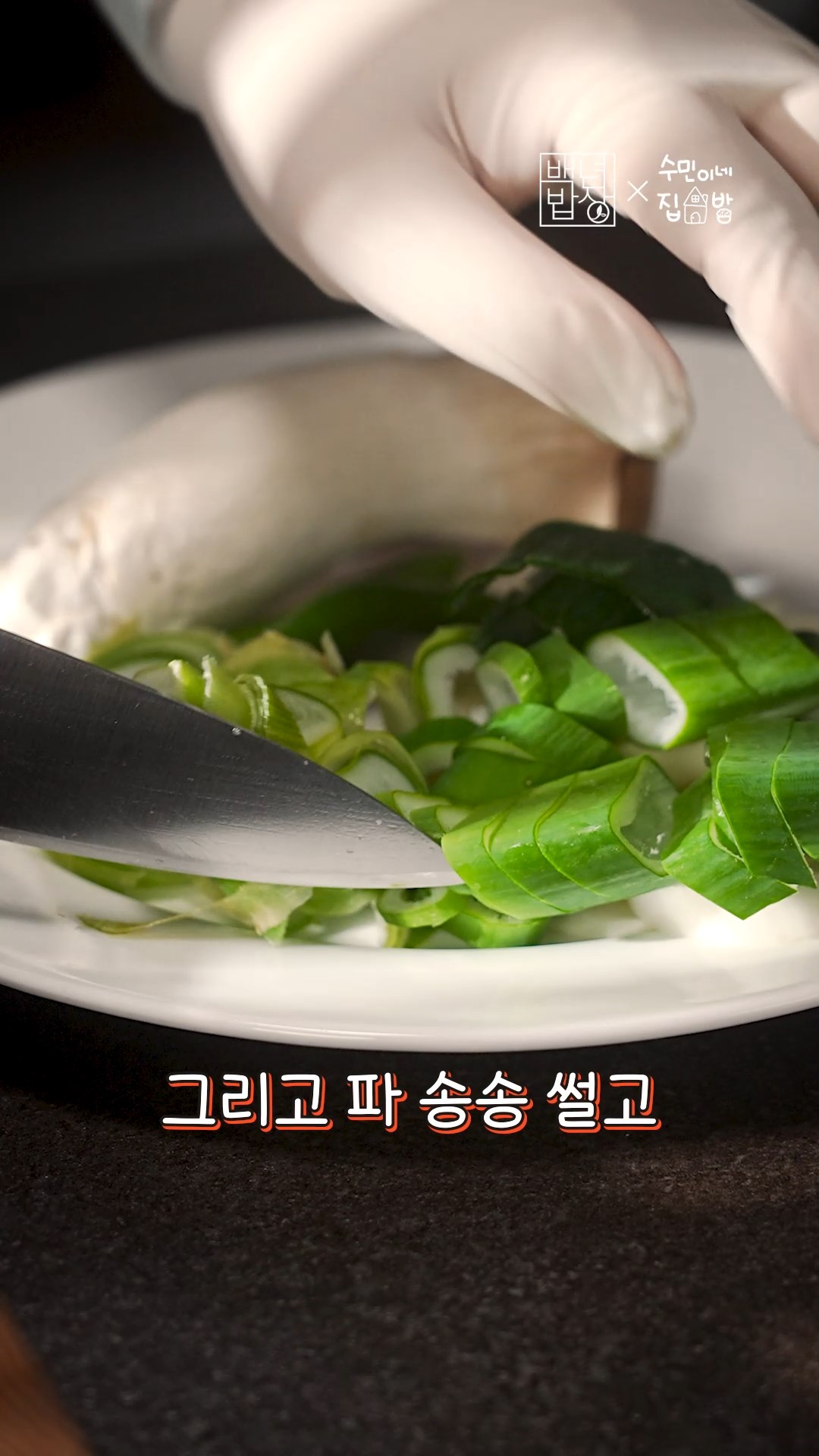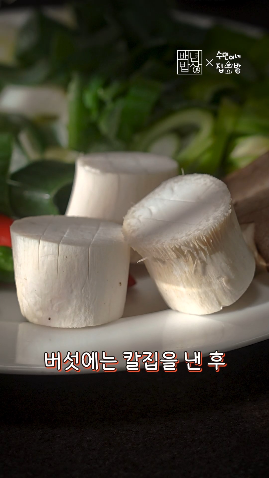 2. 파 썰고 버섯에는 칼집을 낸 후에 청양고추, 홍고추도 썰어주세요.