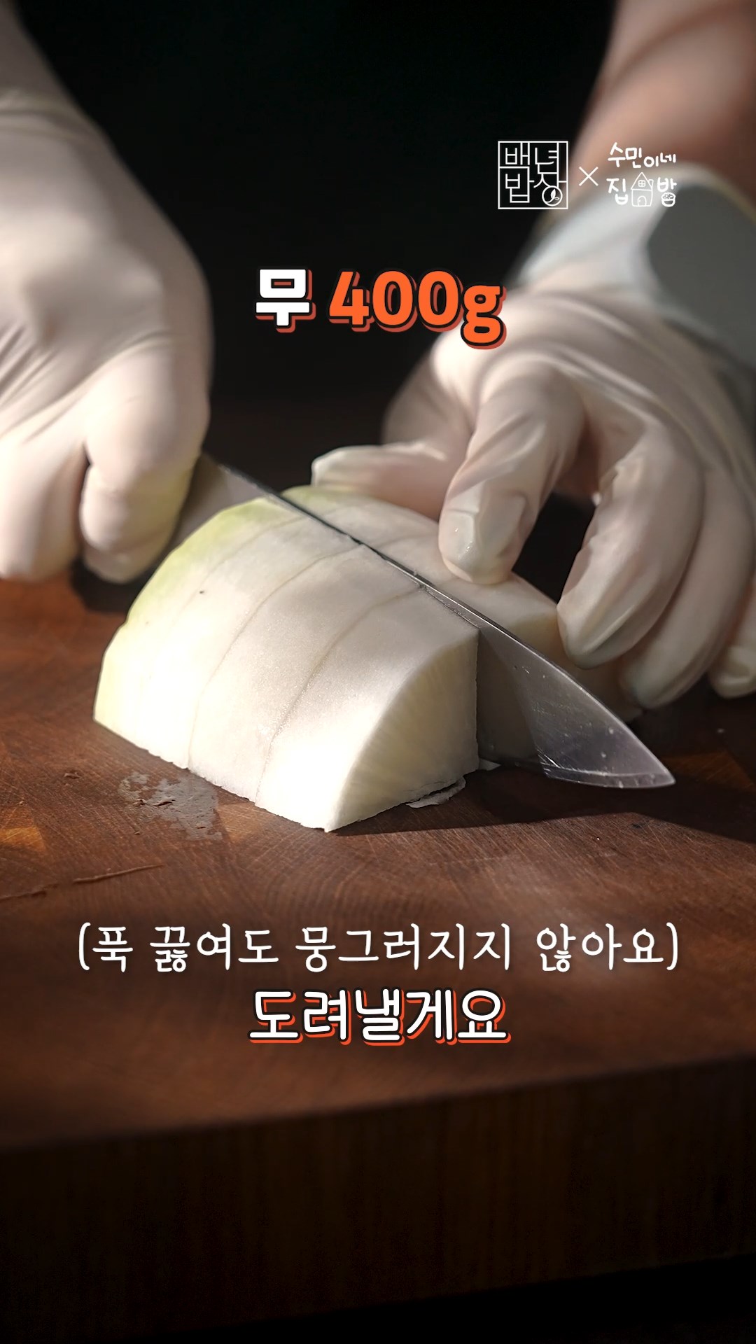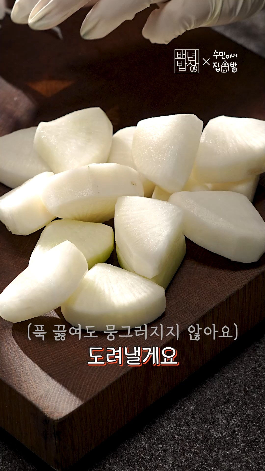 1. 무는 먹기 좋게 잘라서 테두리를 잘라주세요.