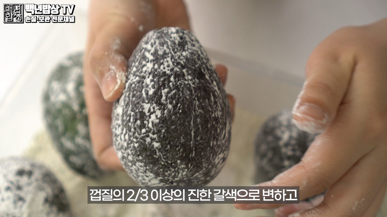 흐르는 물에 한 번 세척하여 겉껍질에 묻은 잔여물이나 노폐물을 세척해 줍니다.