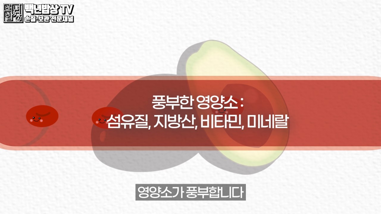 아보카도는 후숙 과로 상온에 두어 말랑말랑하게 익혀야 맛나게 먹을 수 있는 과일이에요. 과일 중에서 단백질과 지방의 함량이 상당히 높은 편에 속하여, 부드럽고 고소한 맛이 특징이에요.