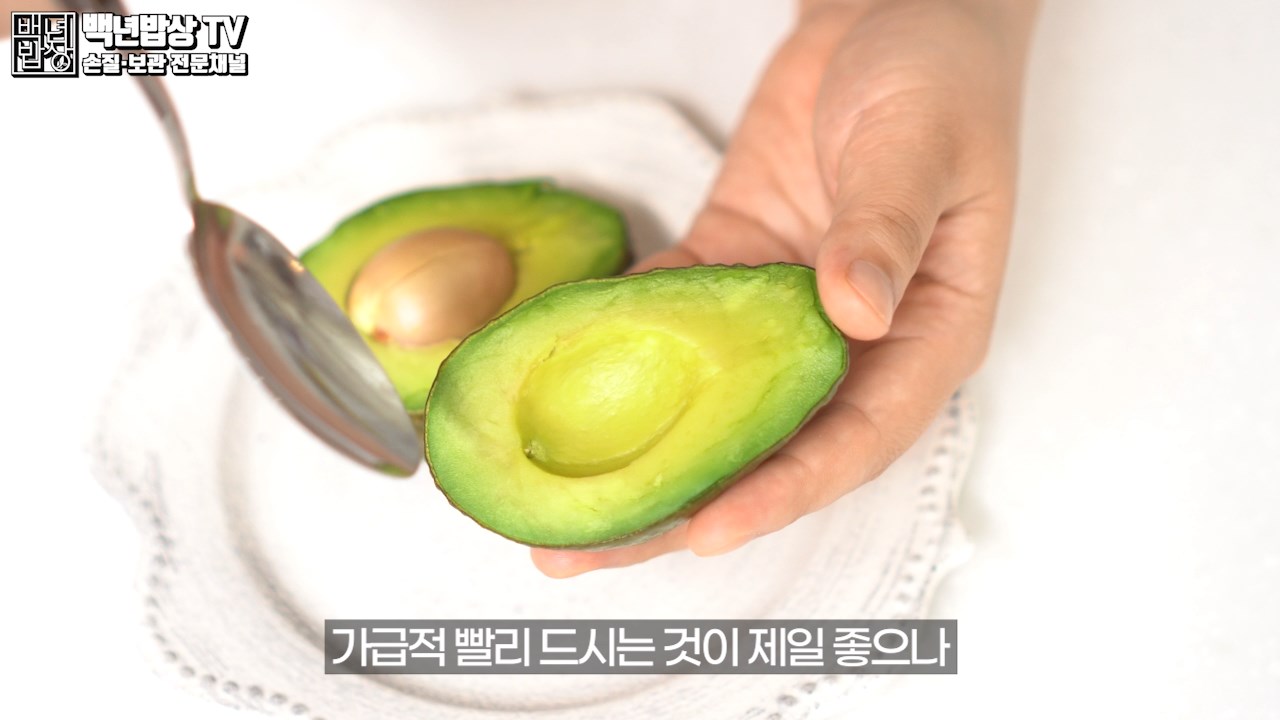 가급적 빨리 드시는 것이 제일 좋으나 이와 같은 방법으로 갈변을 늦추면서 아보카도의 보관 시간을 늘릴 수 있어요.
