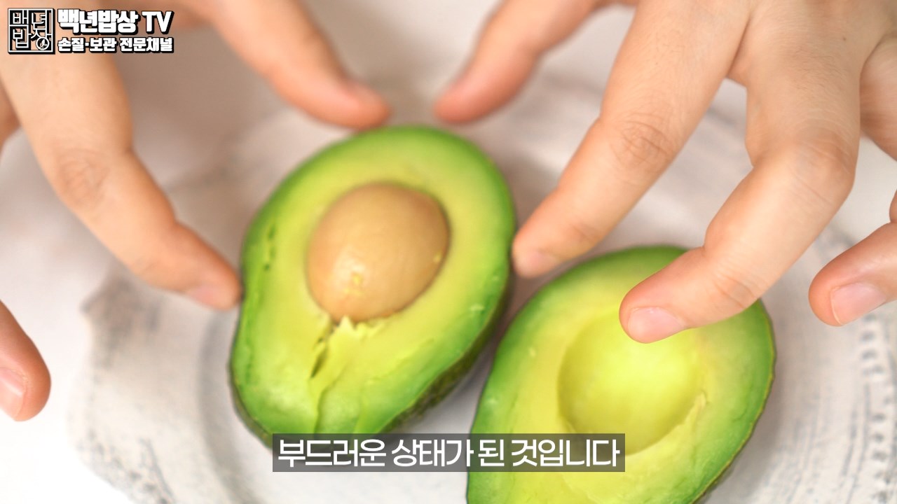 눌렀을 때 말랑한 느낌이 들면 부드러운 상태가 된 것이에요. 식혀서 드시면 됩니다. 후숙한 아보카도와 식감은 비슷할 수 있으나 풍미는 떨어지는 단점이 있어요.