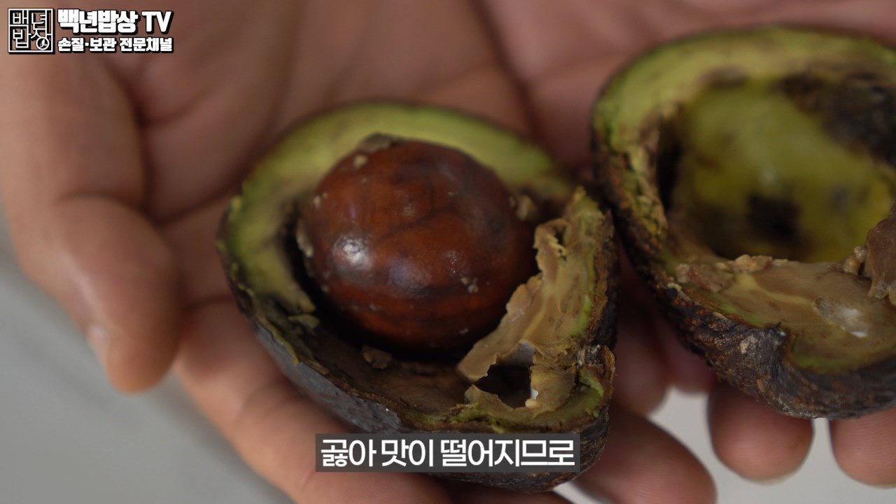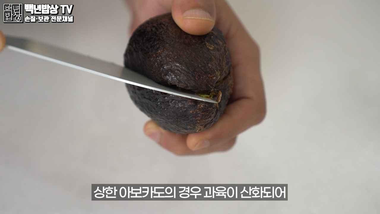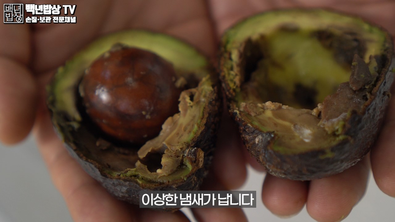 상한 아보카도의 경우 과육이 산화되어 검게 변색함과 동시에 이상한 냄새가 납니다. 썩은 아보카도는 버려 주세요.