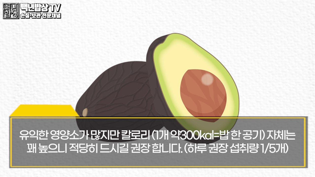 아보카도 효능으로는 체내에 콜레스테롤을 적절하게 조절하여 특히 심혈관질환에 좋으며 영양소(섬유질, 지방산, 비타민, 미네랄)가 풍부합니다. 유익한 영양소가 많지만 칼로리(1개 약300kcal=밥 한 공기) 자체는 꽤 높으니 적당히 드시길 권장 합니다. (하루 섭취 권장량 1/5개)