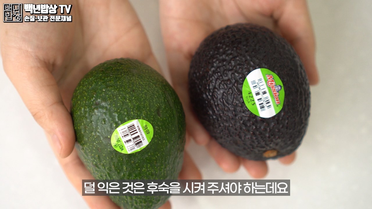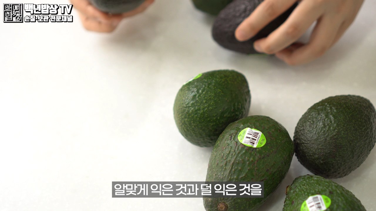 먼저 구매한 아보카도를 알맞게 익은 것과 덜 익은 것을 선별해 주세요. 초록빛이 돌고 딱딱하며 꼭지 부분이 단단히 붙어있는 것이 안 익은 것, 검은빛이 돌고 말캉하며 꼭지 부분이 힘이 없어지면 적당히 잘 익은 것이에요.