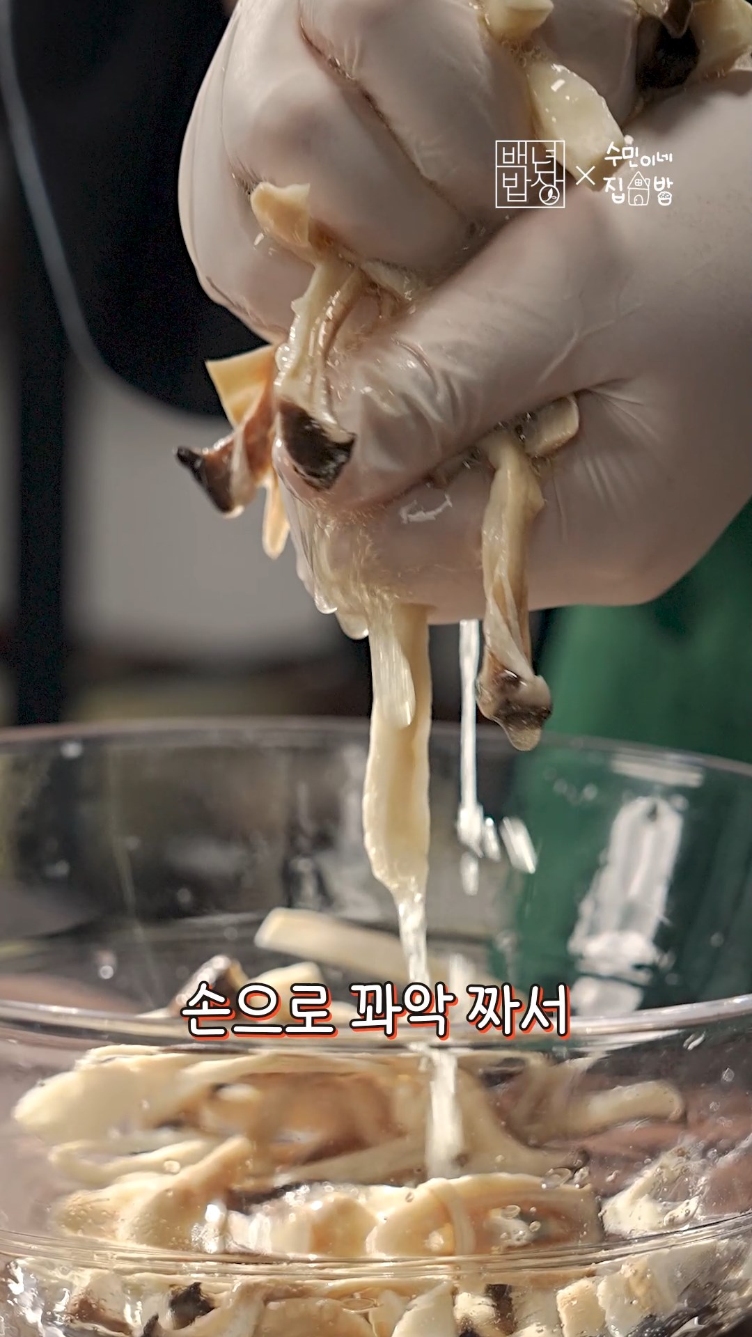 6. 버섯의 물기를 짜주고 볼에 담아 소스, 쪽파 넣고 무쳐주세요.
