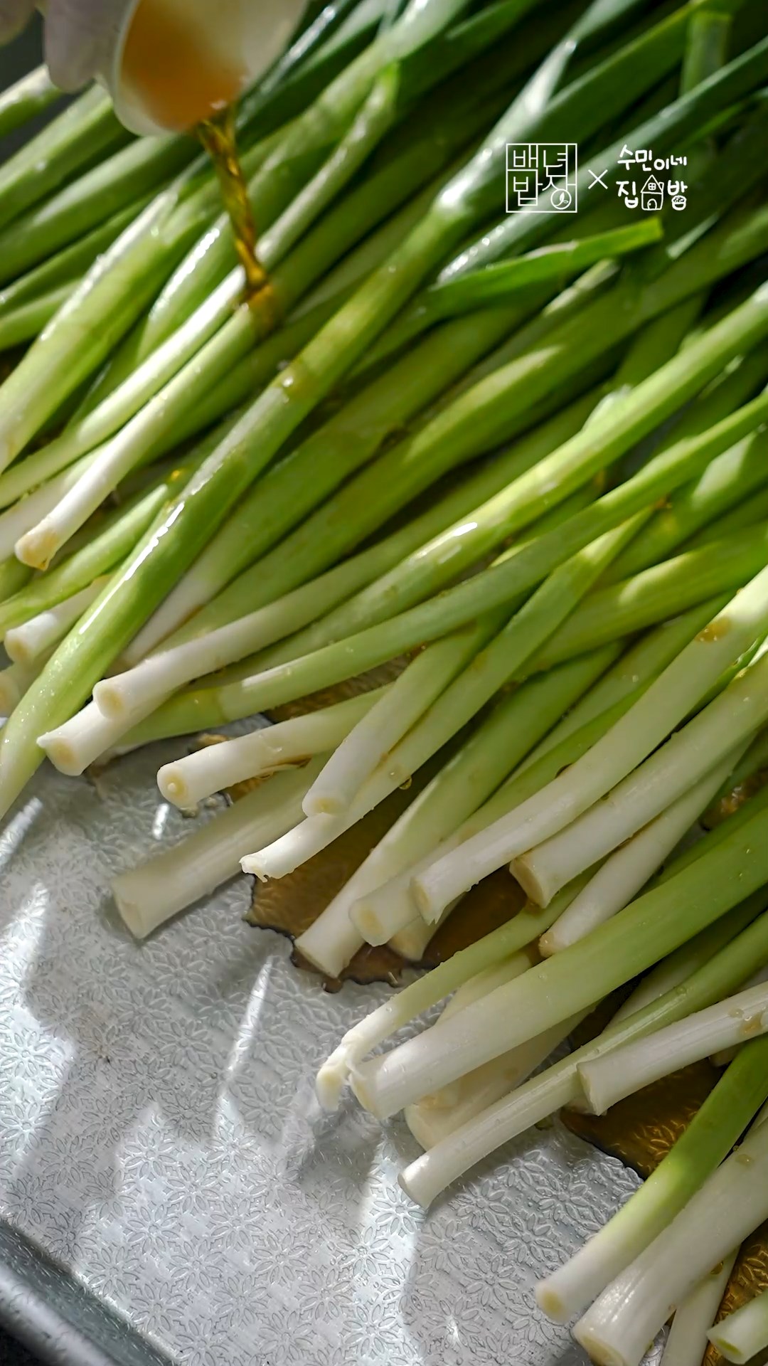 1. 풋마늘을 깨끗하게 세척하고 멸치 액젓을 뿌려 2~3시간 절여주세요.
