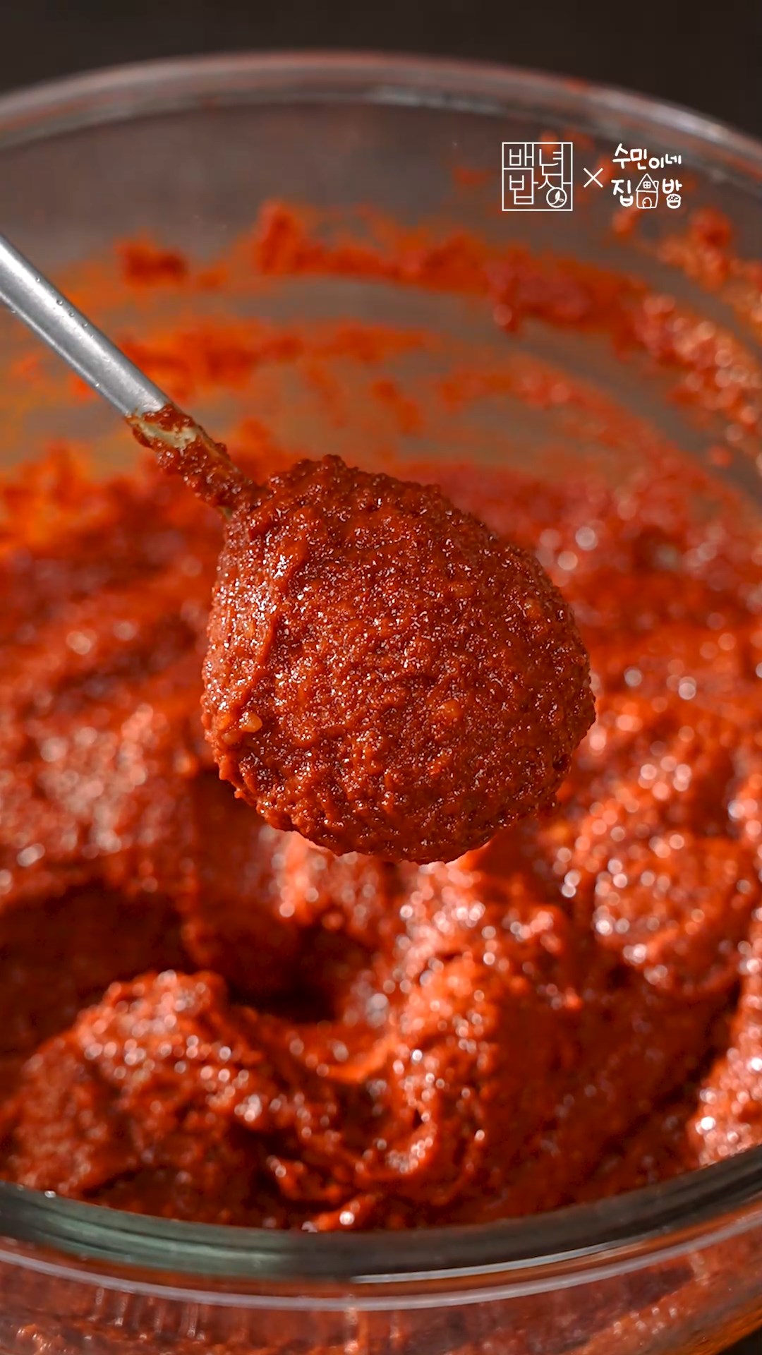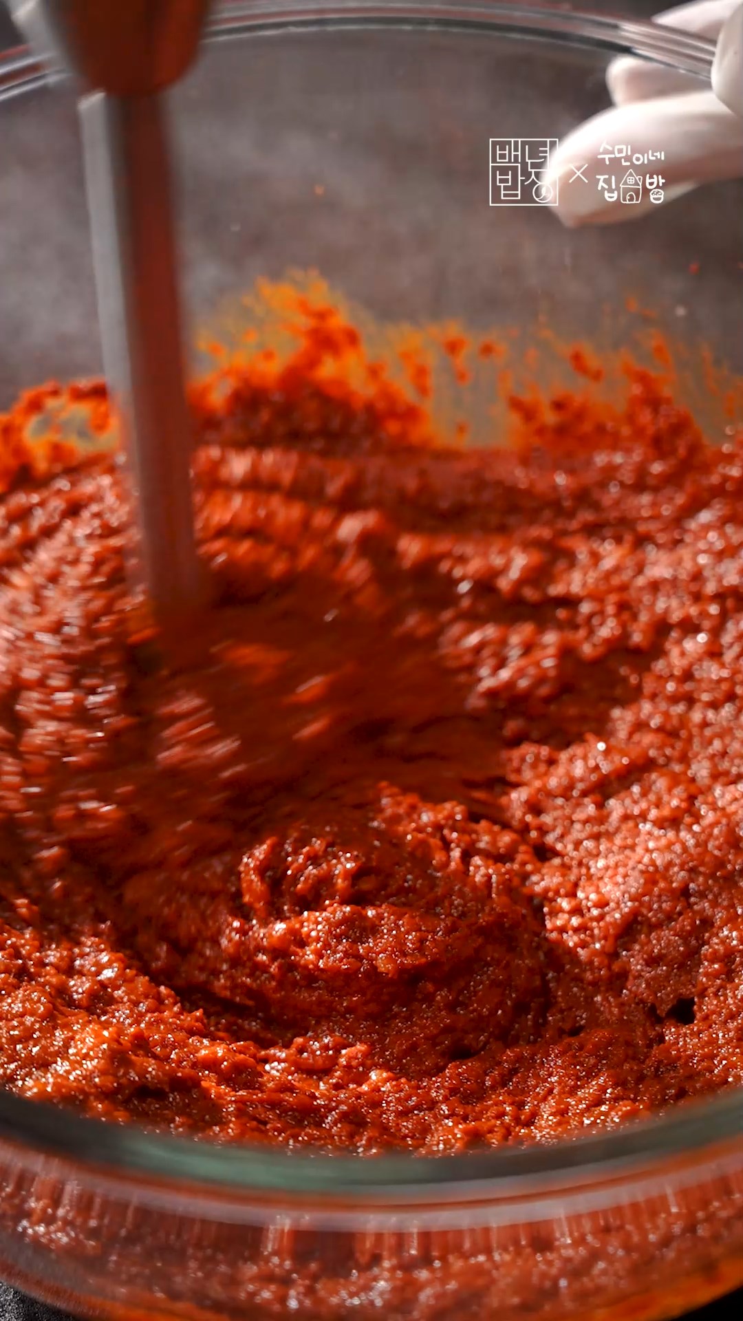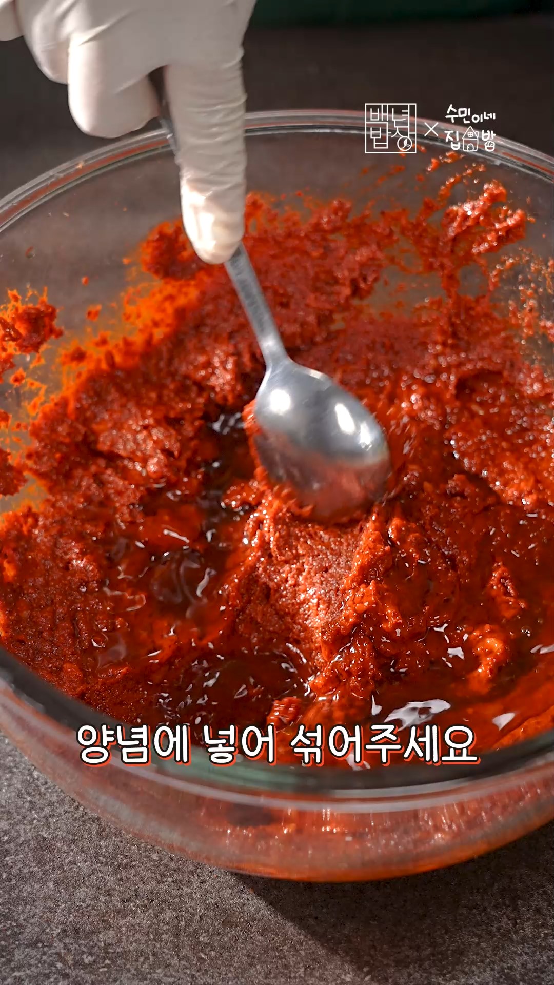 3. 풋마늘을 절인 액젓을 양념에 넣어 섞어주세요.