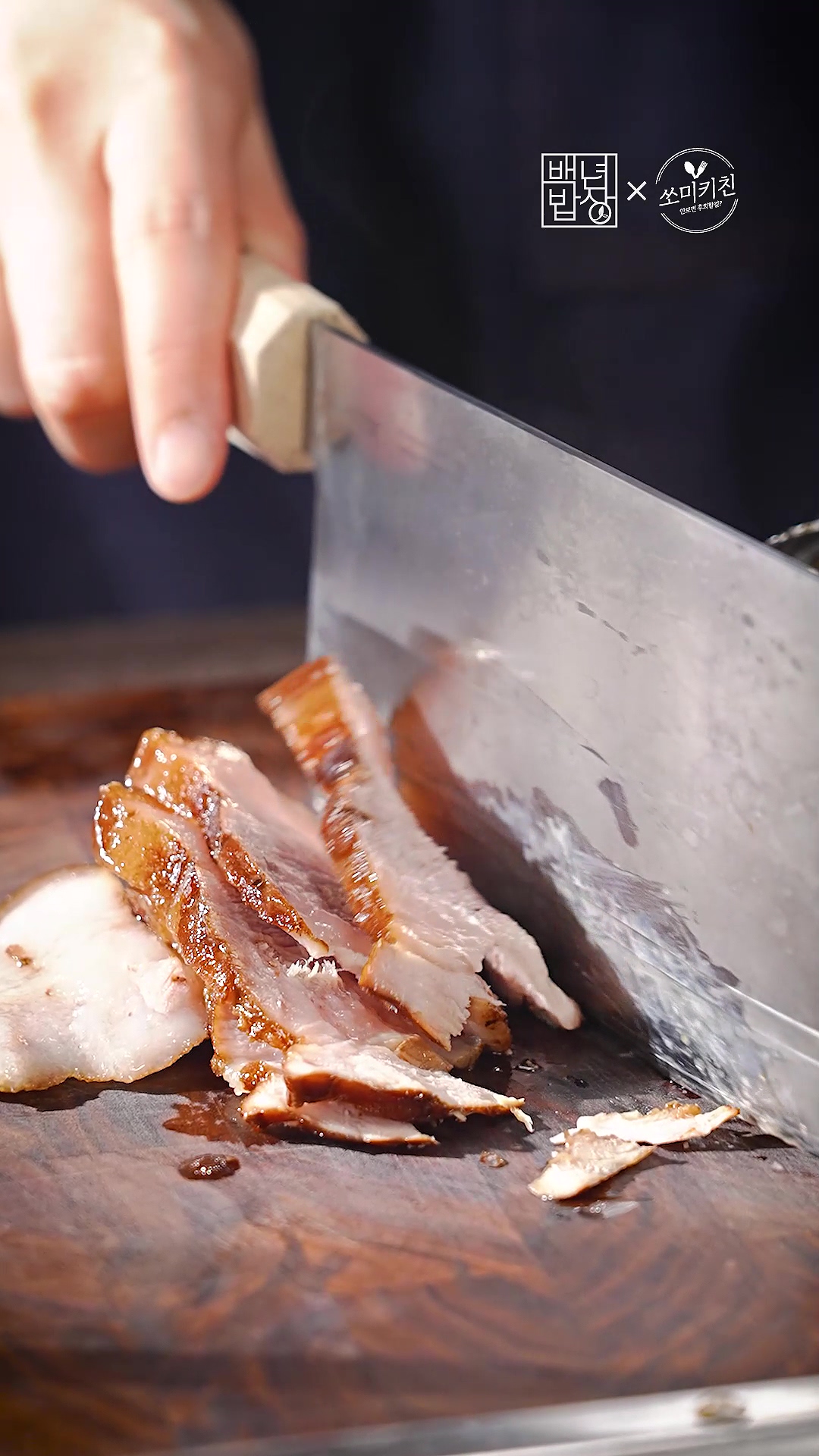 7. 다 익은 고기는 꺼내어 얇게 썰어주세요.