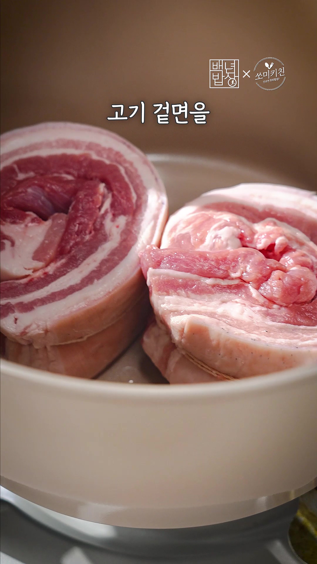 3. 팬에 기름 살짝 두르고 고기 겉면을 노릇하게 튀기듯 구워주세요.