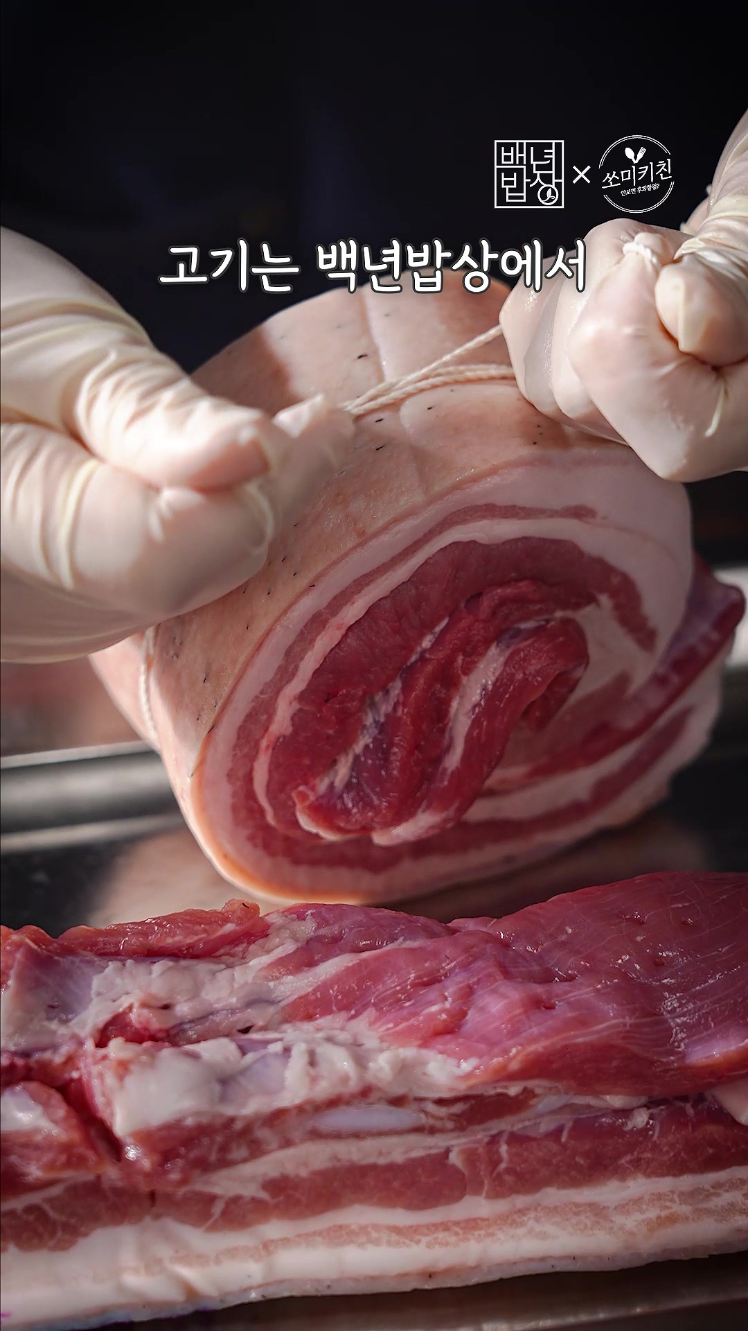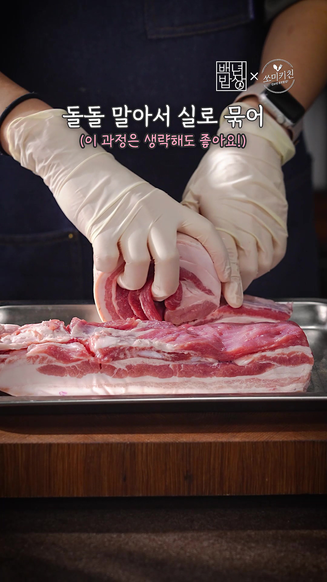 2. 고기는 돌돌 말아서 실로 묶어 모양을 잡아주세요.