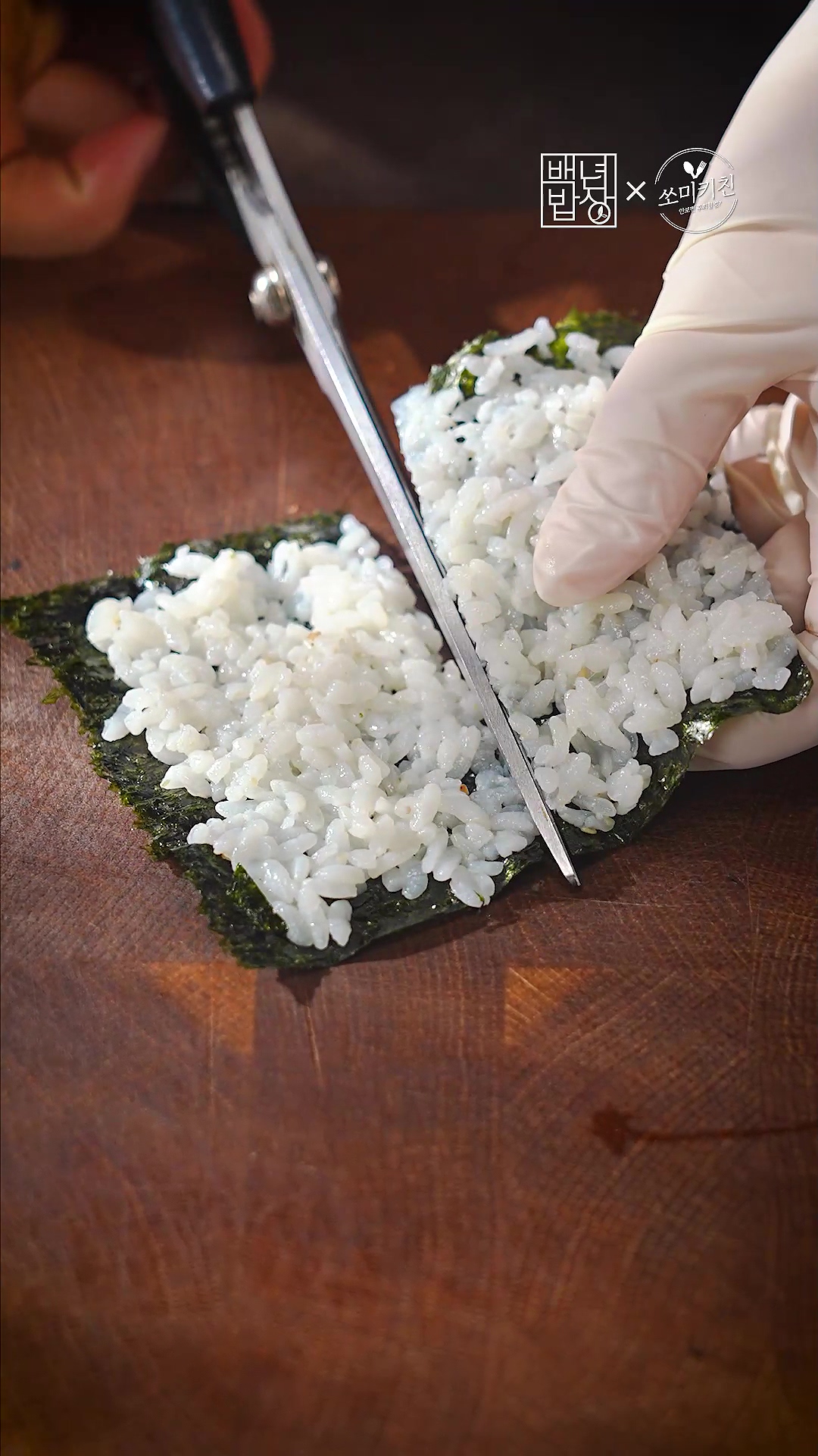 밥 양 줄이고 싶으면 잘라서 깔아주세요.