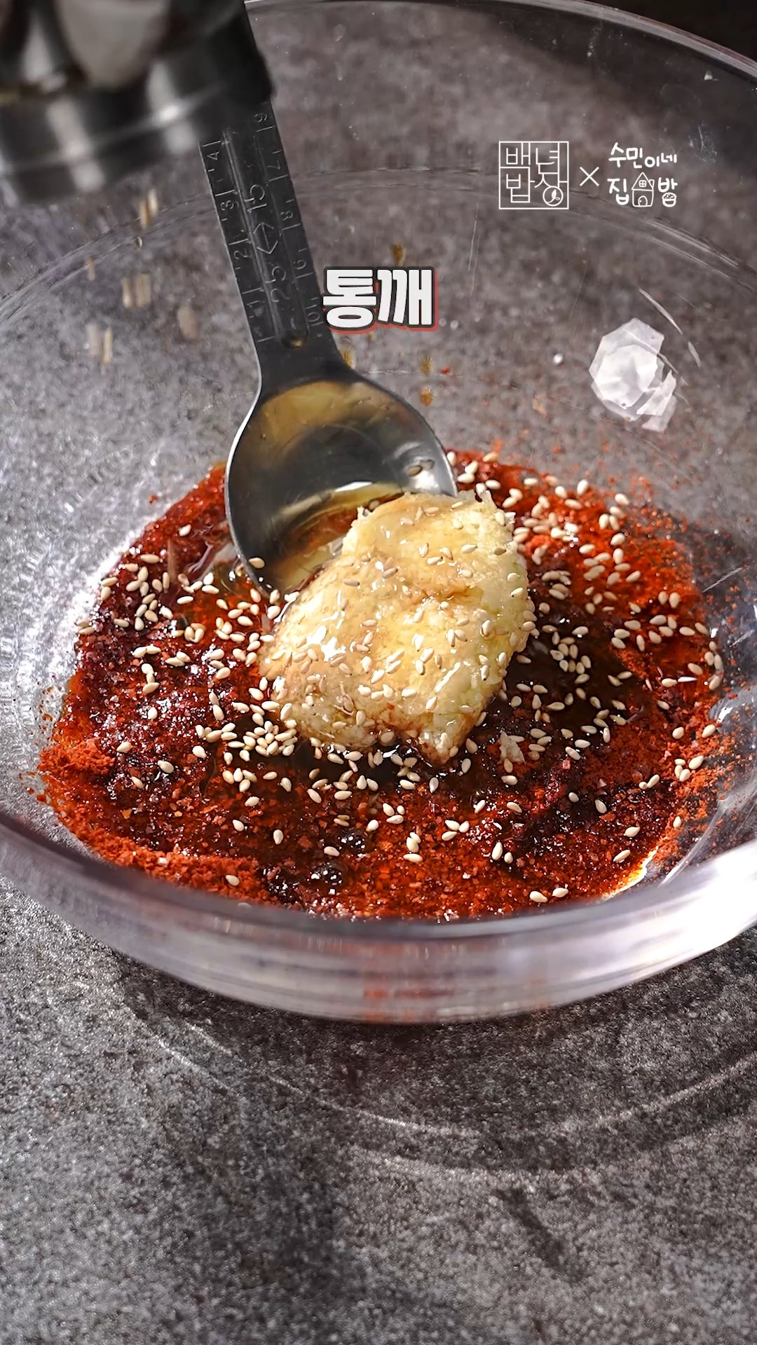 4. 볼에 쪽파 ½, 고춧가루, 간장, 멸치액젓, 올리고당, 다진마늘, 통깨, 참기름을 넣고 양념을 만들어주세요.