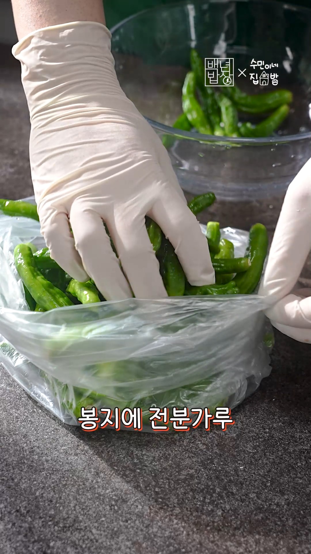 5. 식힌 꽈리고추를 양념장에 넣고 무쳐낸 뒤 쪽파, 통깨, 참기름을 둘러주면 완성!