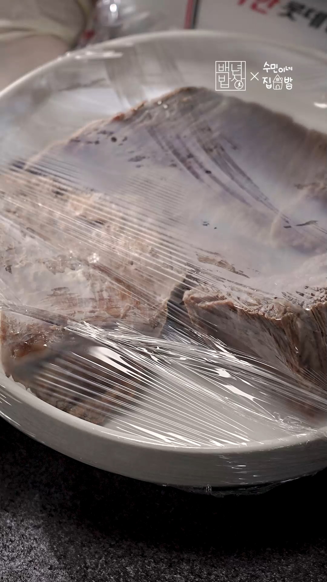 4. 다 익은 고기는 건져내 랩을 씌워 마르지 않게 해주세요.