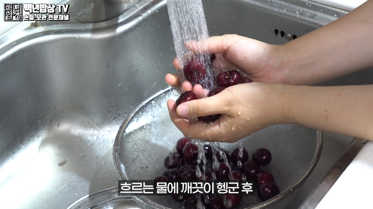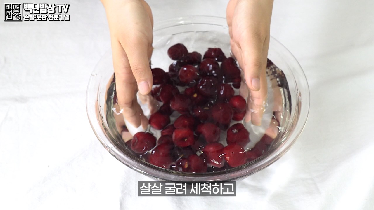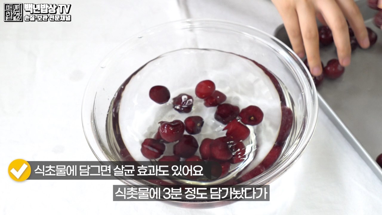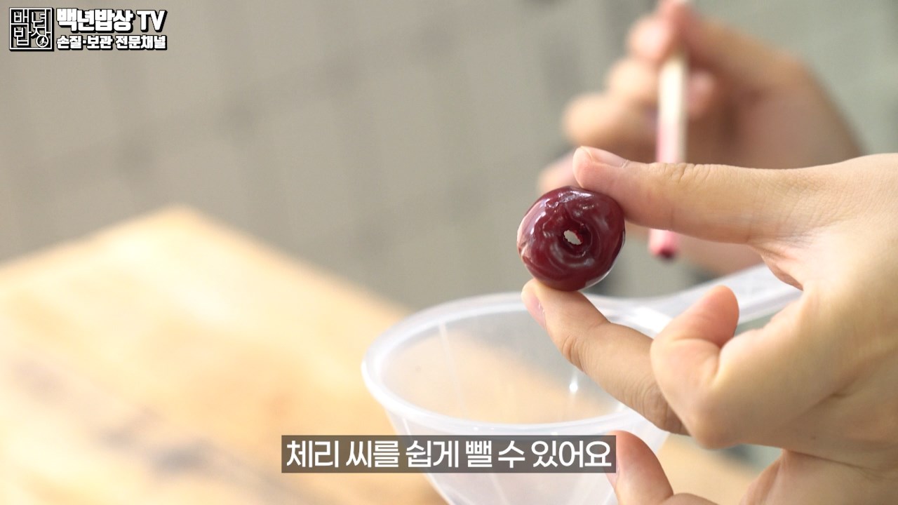 먼저 꼭지 안에 남아 있을 먼지나 노폐물을 깨끗이 세척하기 위해 체리 꼭지를 따주세요.