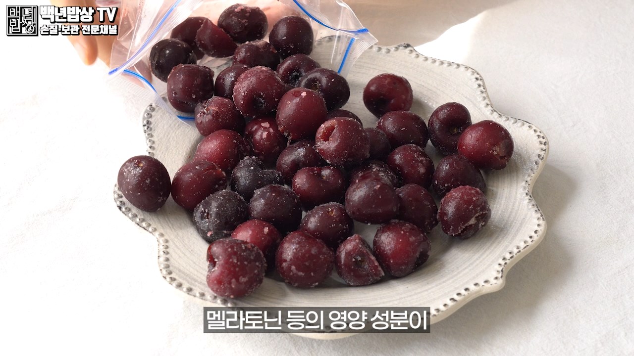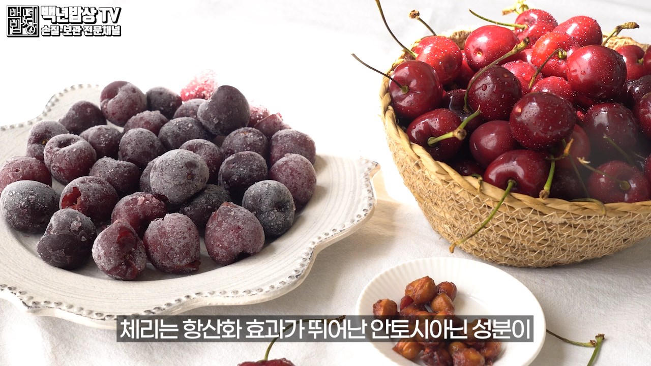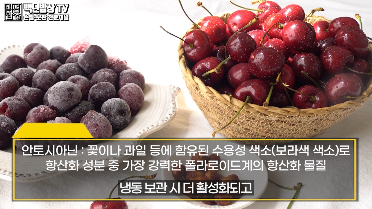 체리는 항산화 효과가 뛰어난 안토시아닌 성분이 냉동 보관 시 더 활성화되고 멜라토닌 등의 영양 성분이 냉동 상태에서 변화 없이 유지됩니다. (*안토시아닌: 꽃이나 과일 등에 함유된 수용성 색소(보라색 색소)로 항산화 성분 중 가장 강력한 폴라로이드계의 항산화 물질)