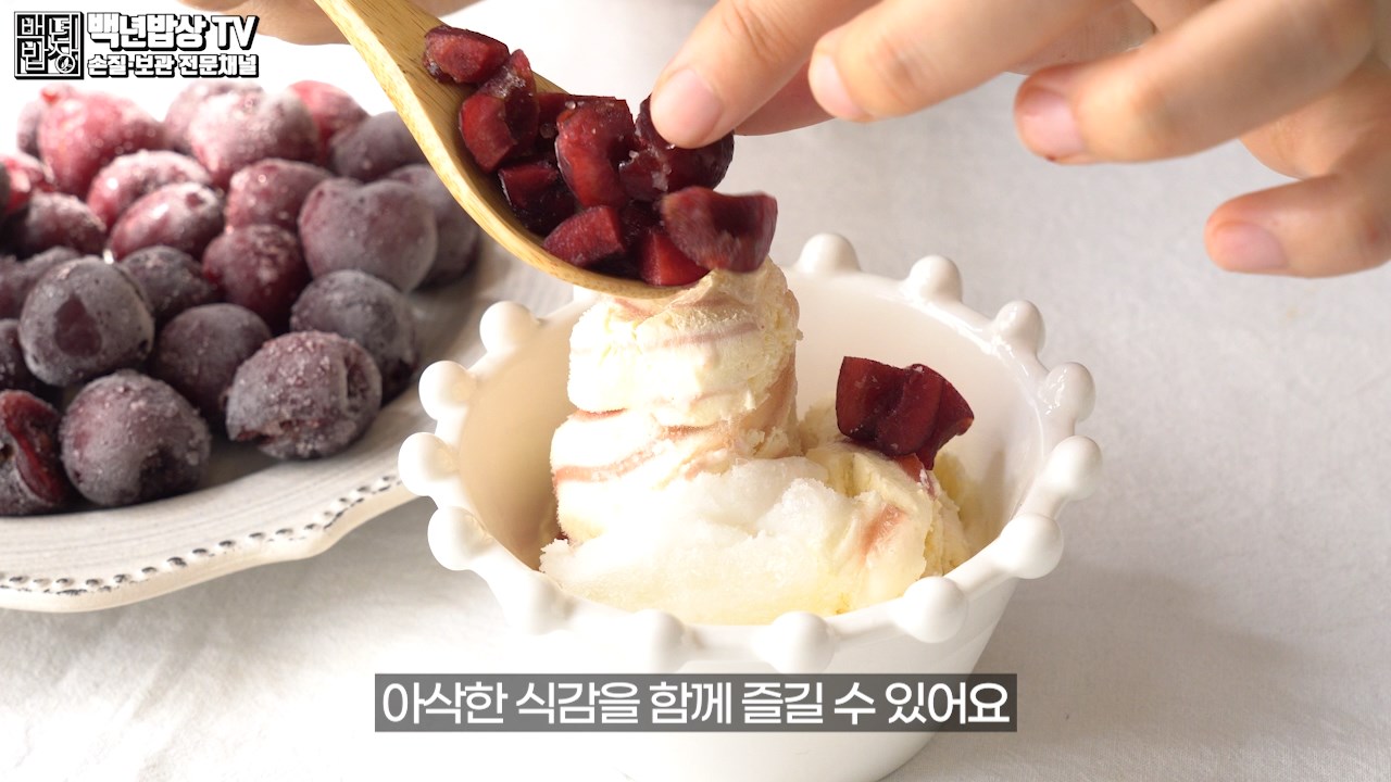 특히 체리는 얼려서 먹으면 시원한 식감과 함께 효능을 더 효과적으로 섭취할 수 있는데요. 아이스크과 요거트와 함께 먹으면 아삭한 식감과 함께 즐길 수 있어요. 냉동한 체리는 해동 하지 말고 상태 그대로 드세요! 미생물 번식의 위험이 있으니 해동하실 경우엔 냉장해동 하세요.