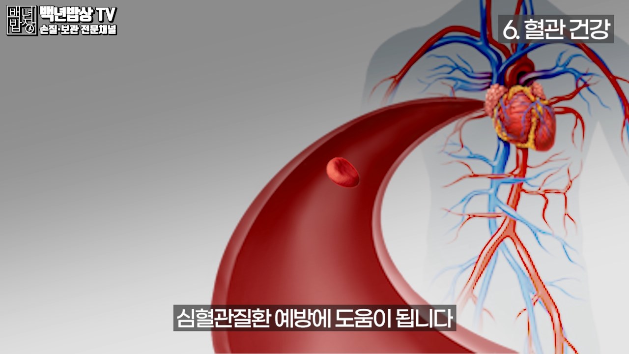 6.혈관건강 : 칼륨이 다량 함유되어 있어서 체내의 나트륨 배출을 도움으로 고혈압과 동맥경화 같은 심혈관질환의 예방에 도움이 됩니다.