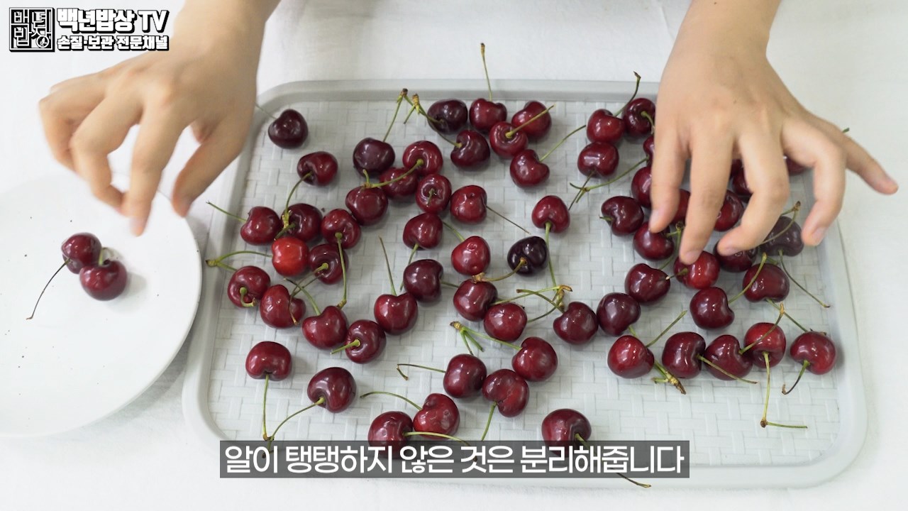 체리를 구매한 후 체리를 펼쳐놓고 상태를 체크하여 꼭지가 떨어지거나 알이 탱탱하지 않은 것은 분리해 줍니다. 물러져 있는 체리와 함께 보관하면 옆에 체리도 금새 안 좋아질 수 있어요.