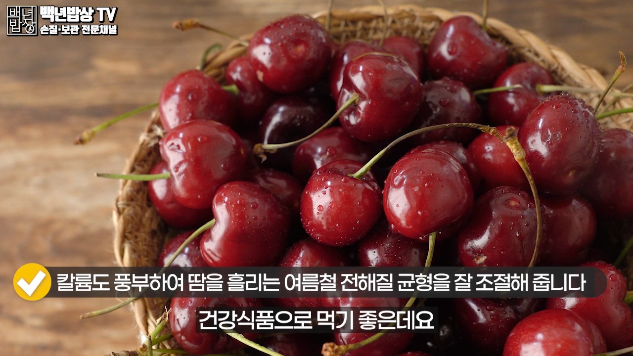 체리는 낮은 칼로리로 나트륨과 지방도 없어 건강식품으로 먹기 좋아요. 칼륨도 풍부하여 땀을 흘리는 여름철 전해질 균형을 잘 조절해 줍니다.