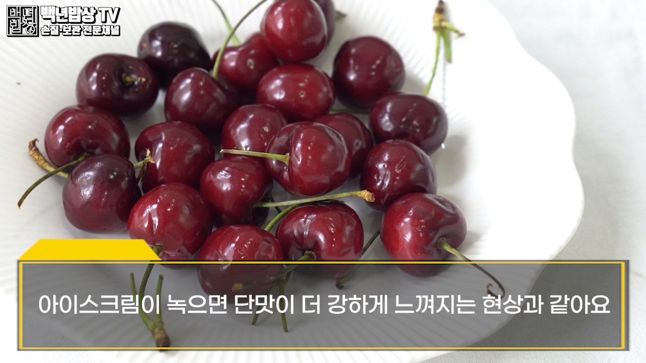 냉장 보관한 체리는 먹을 만큼 꺼내어 실온에 30분 정도 두었다가 세척하여 드시면 냉기가 빠져 더 맛있게 드실 수 있어요. 아이스크림이 녹으면 단맛이 더 강하게 느껴지는 현상과 같아요.