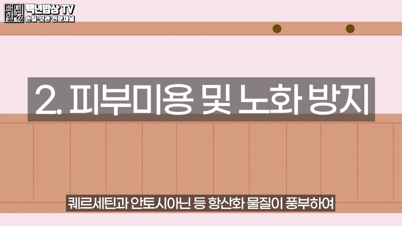 2.피부미용 및 노화 방지 : 케르세틴과 안토시아닌 등 항상화 물질이 풍부하여 피부 면역력을 높여주고, 노폐물 증가를 억제하는 효능이 있어요.