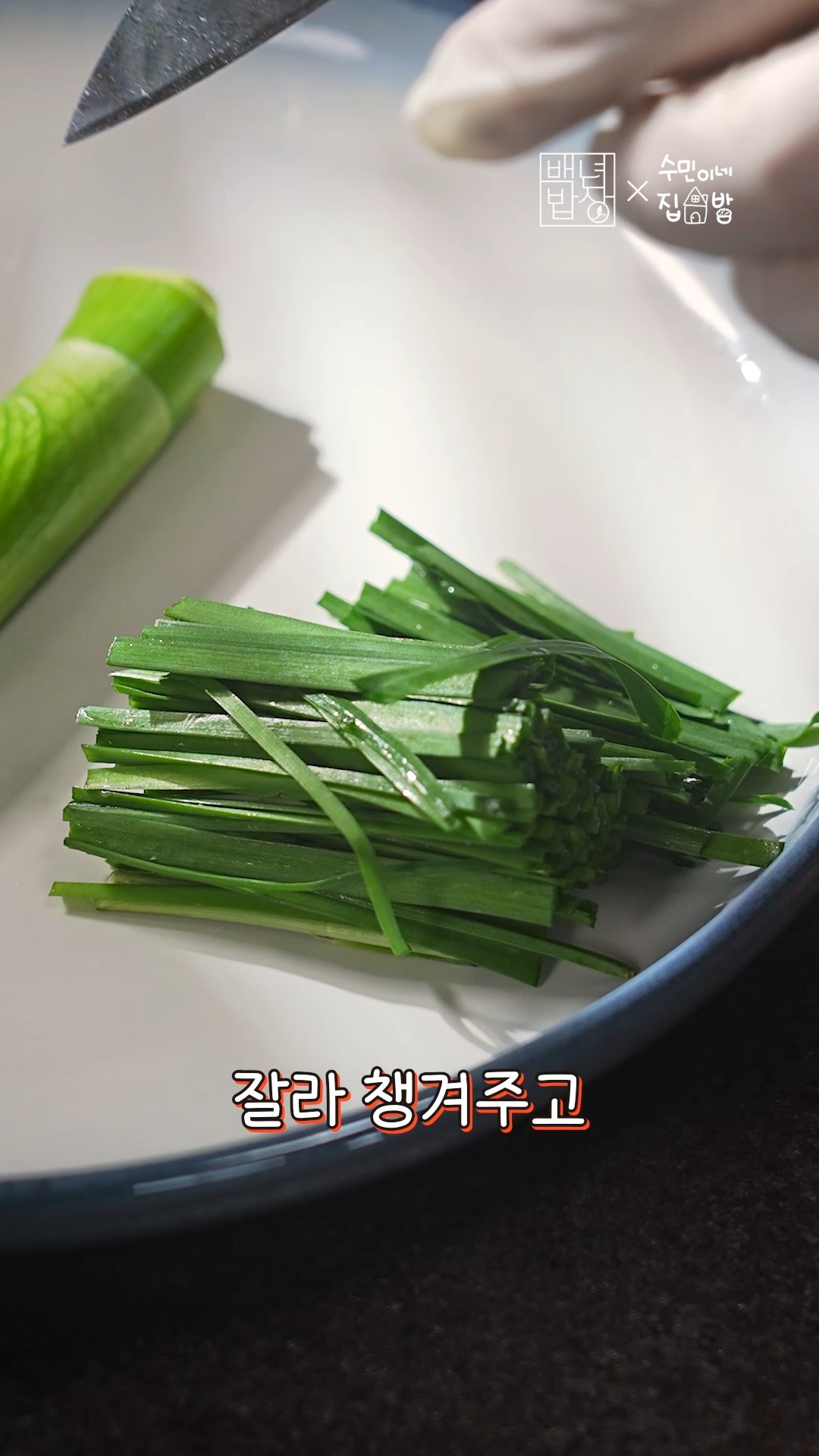 3. 그 동안 부추는 너무 길지않게 잘라주세요.