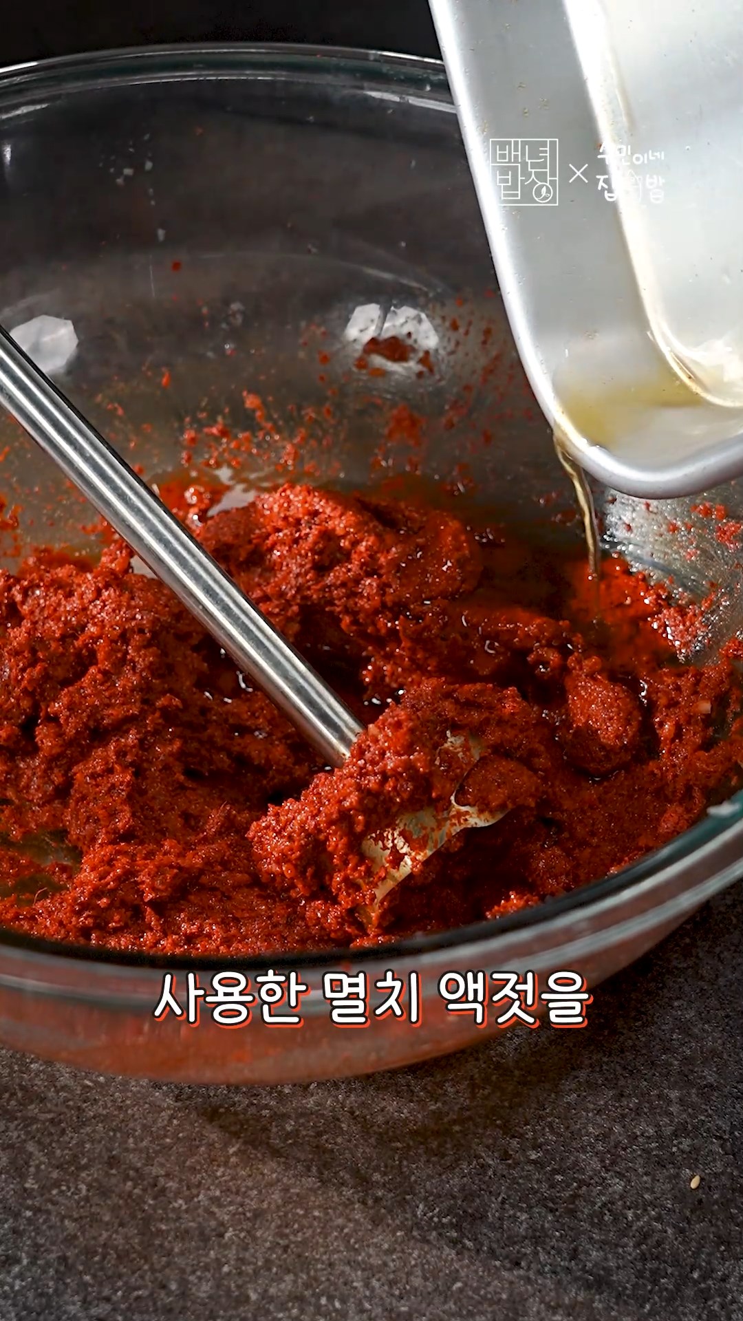 4. 쪽파에 부어둔 멸치액젓을 양념에 넣고 다시 한번 더 섞어주세요.