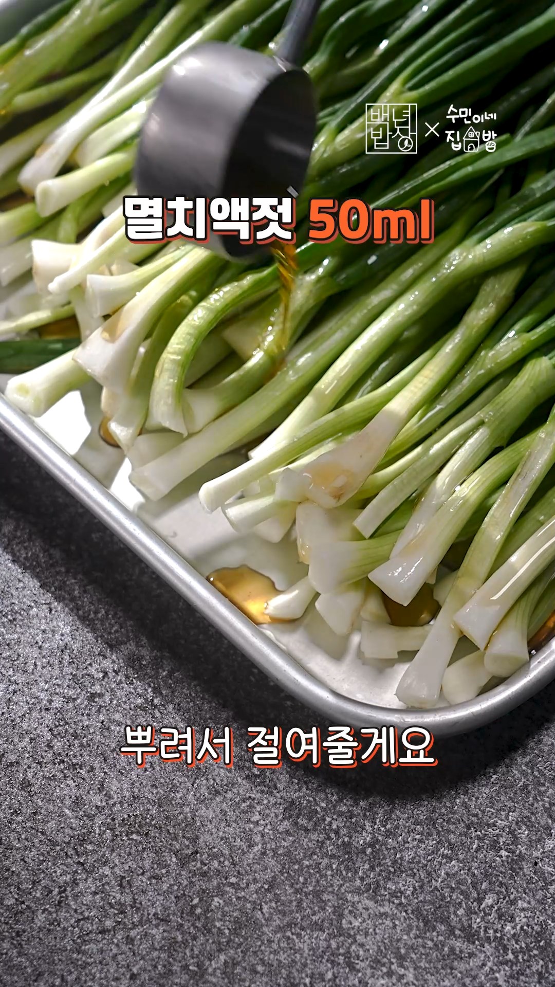 2. 멸치액젓을 쪽파뿌리부분에 부어 절여주세요.