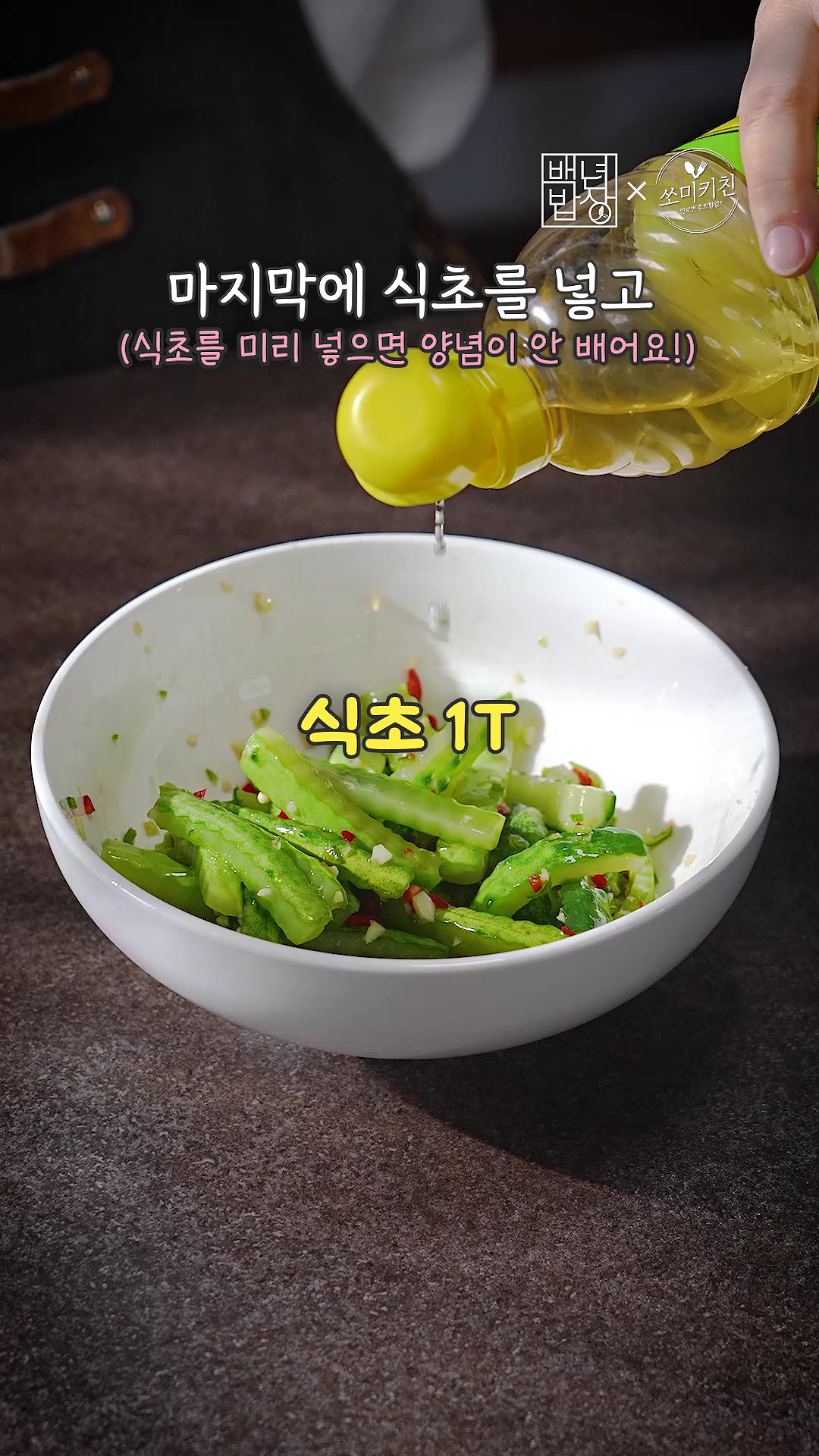 (식초를 미리 넣으면 양념이 안 배어들어요.)