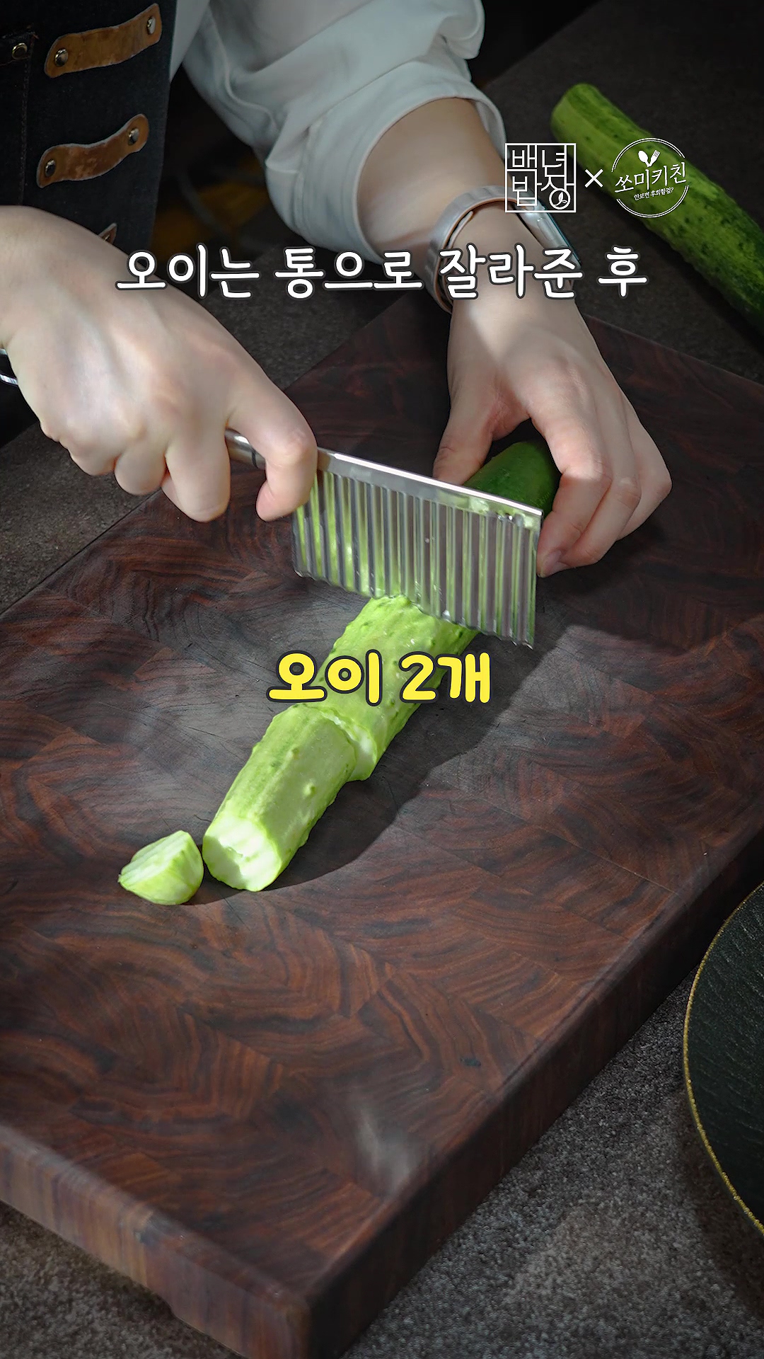 1. 오이를 6cm 길이로 잘라준 후, 세로로 썰어줄게요.