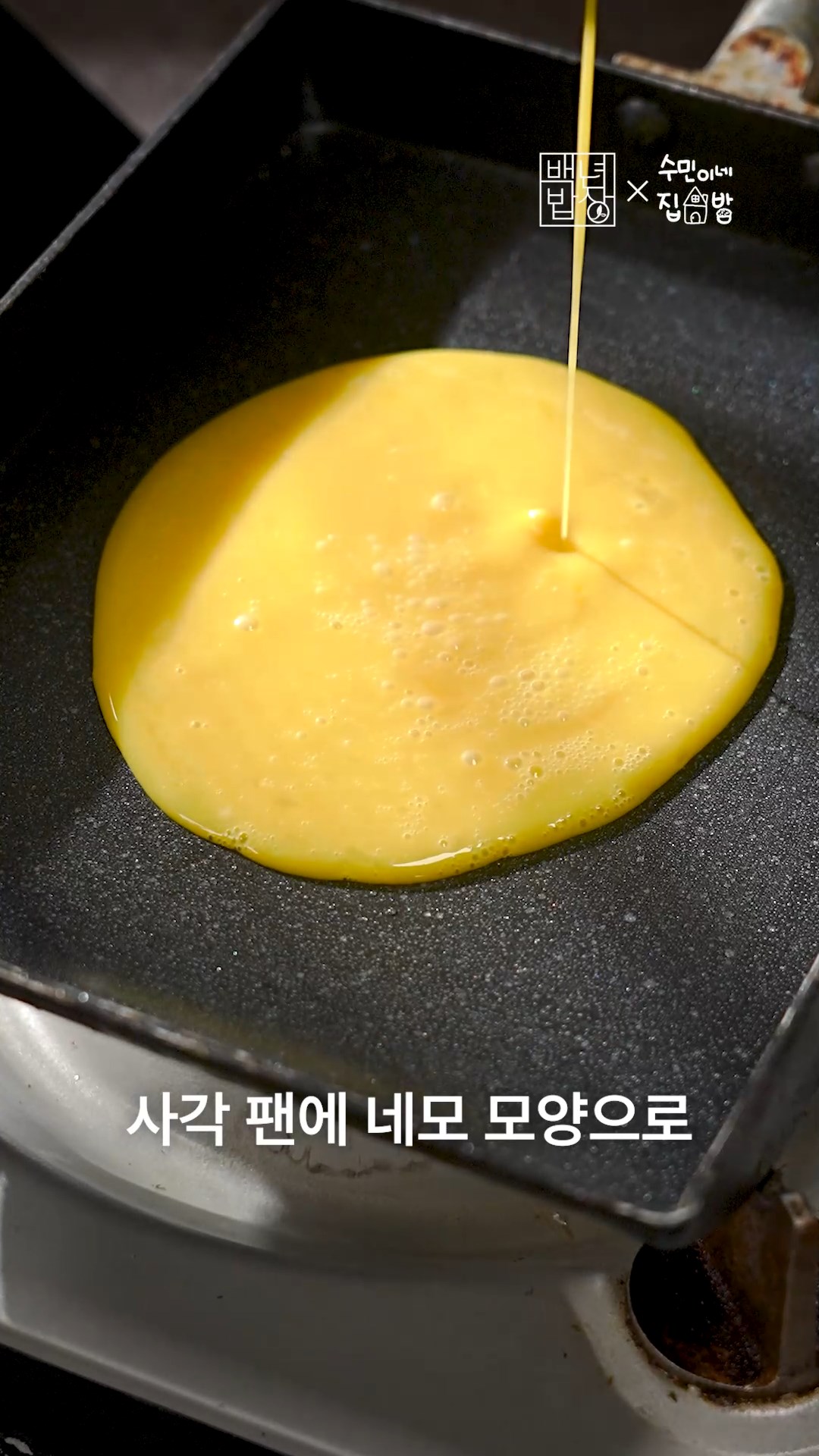 3. 계란을 풀어 사각팬에 구워 식힌 뒤 반으로 잘라주세요.