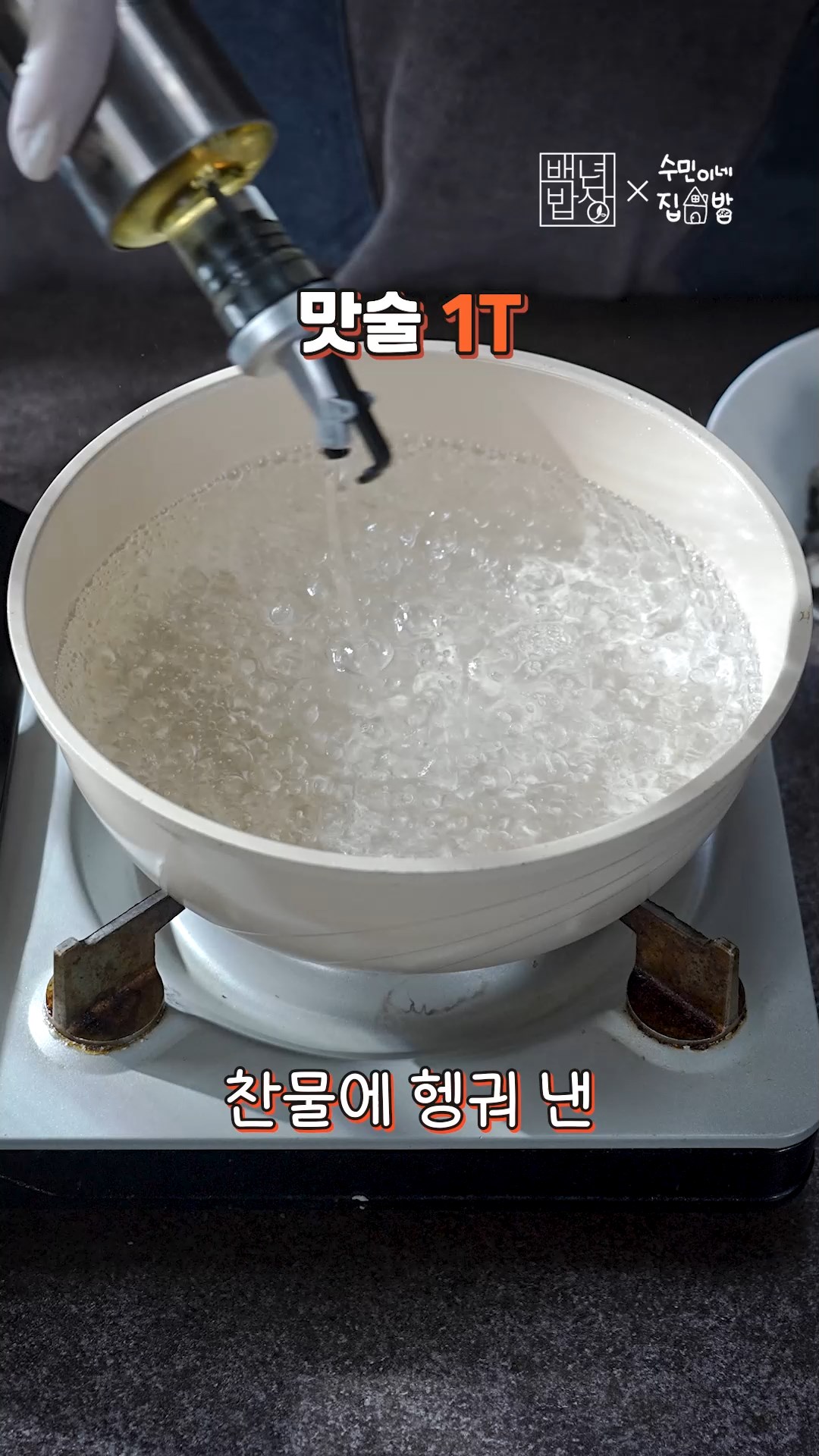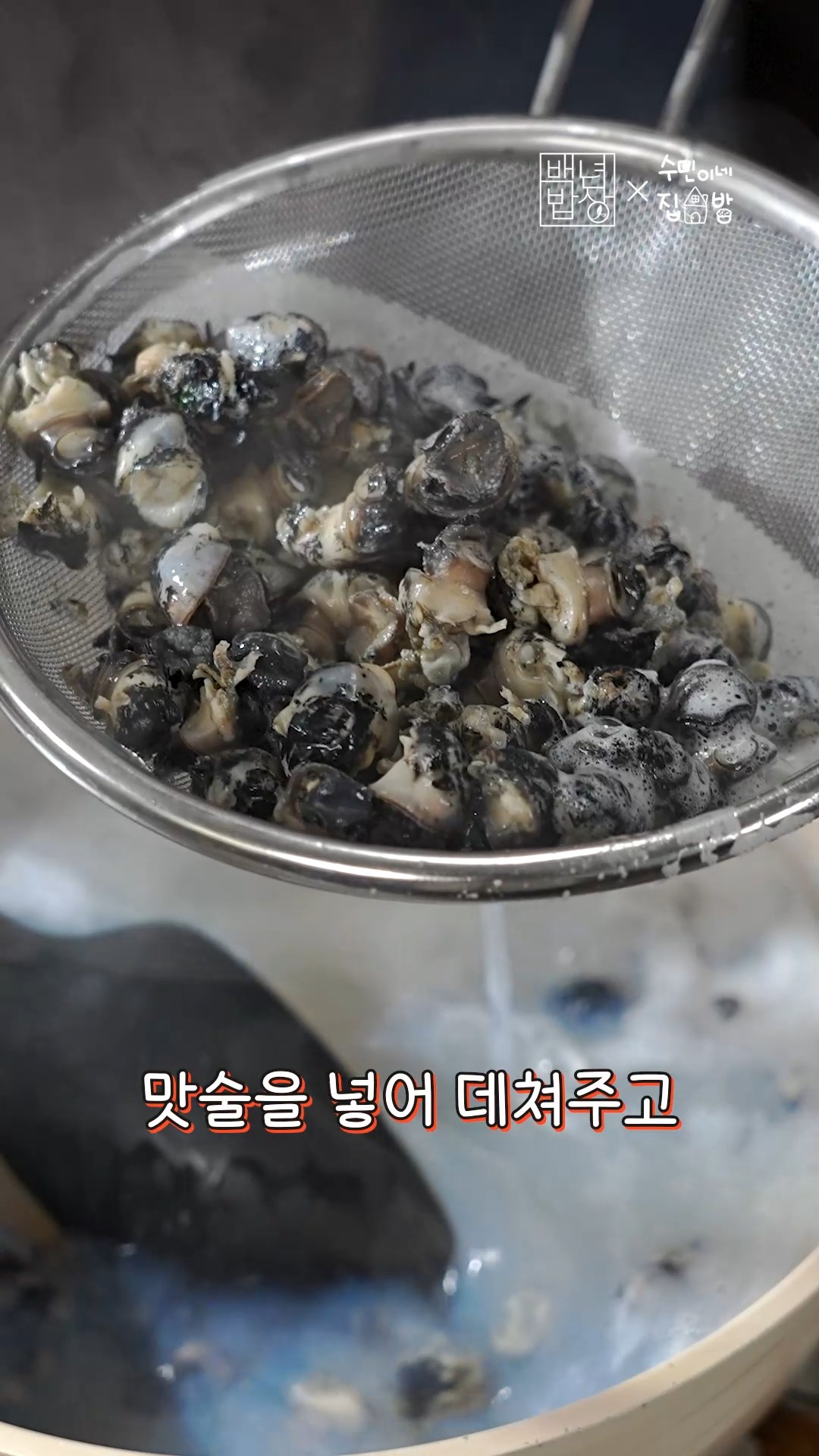 2. 자숙우렁은 끓는물에 맛술을 넣은 뒤 한번 더 데쳐 찬물에 헹궈주세요.
