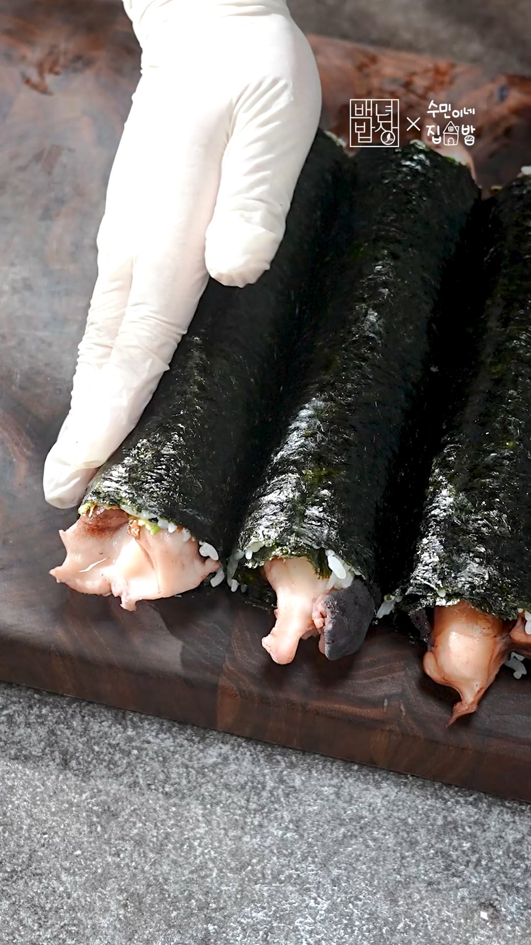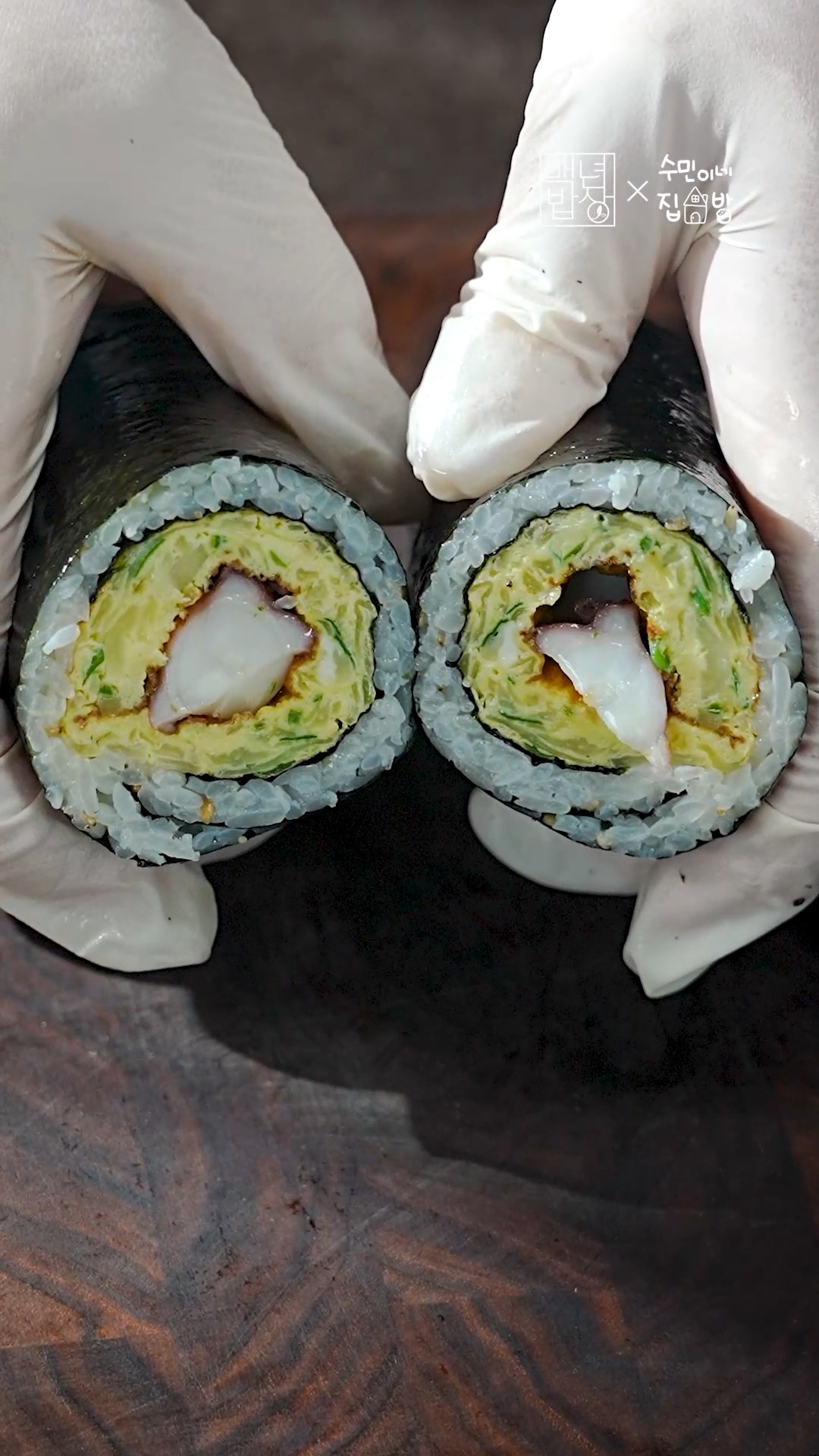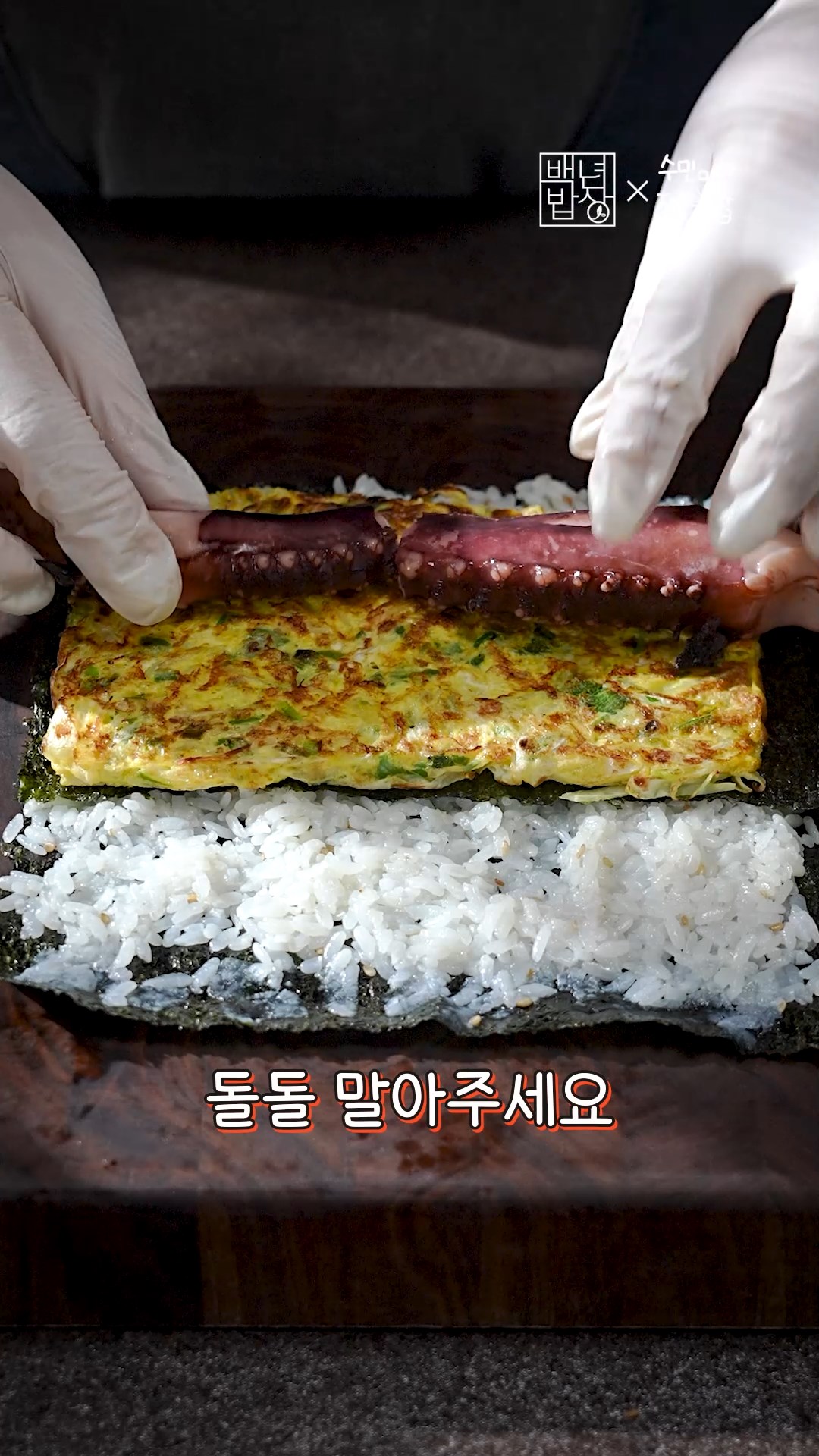 7. 김 반장, 자른계란, 문어를 넣어 돌돌 말아주세요