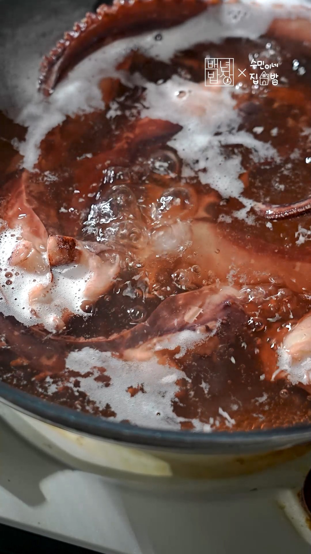 2. 끓는 물에 맛술을 넣고 문어를 20분 정도 삶아주세요